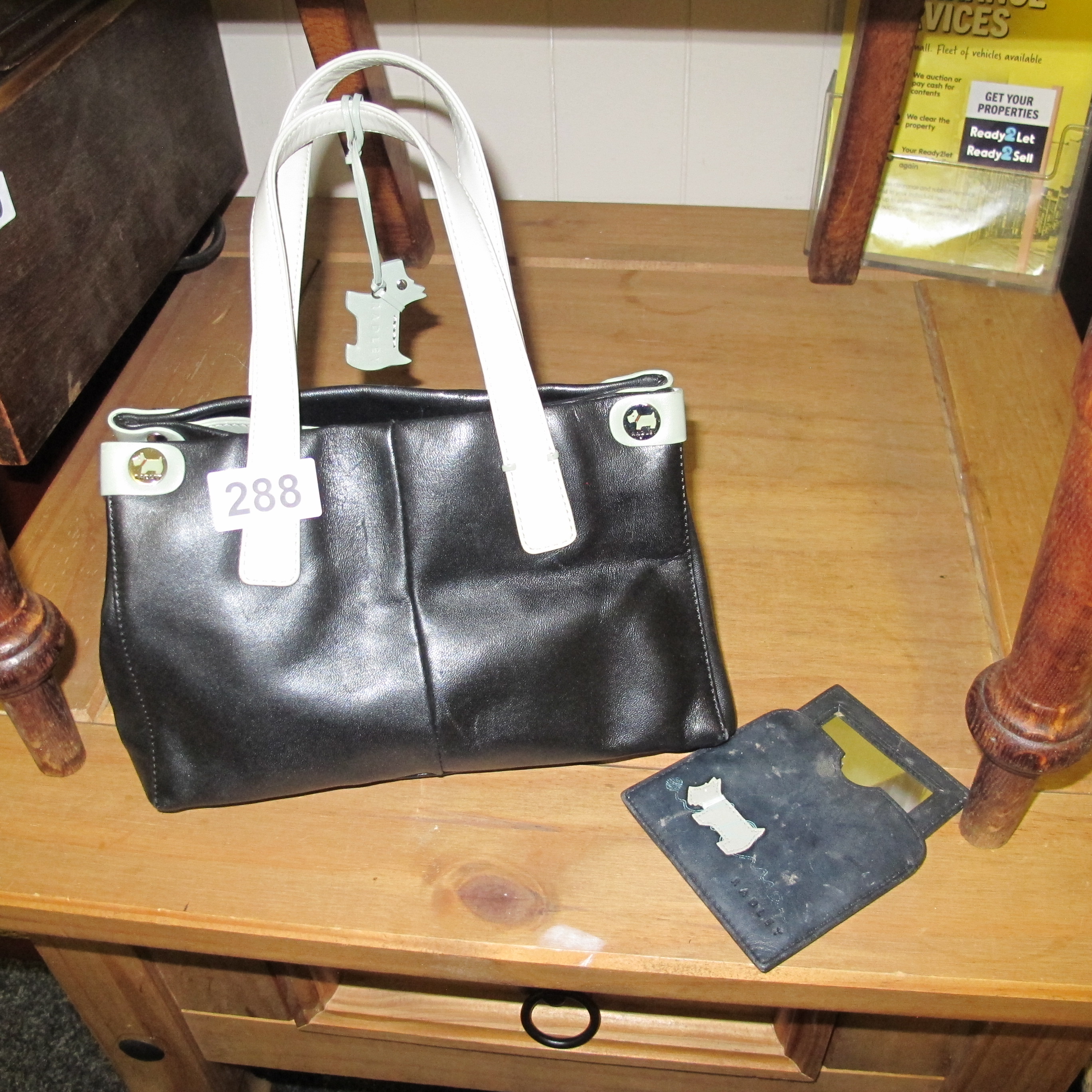 A Radley Black Leather Tote Bag with Matching Accessory