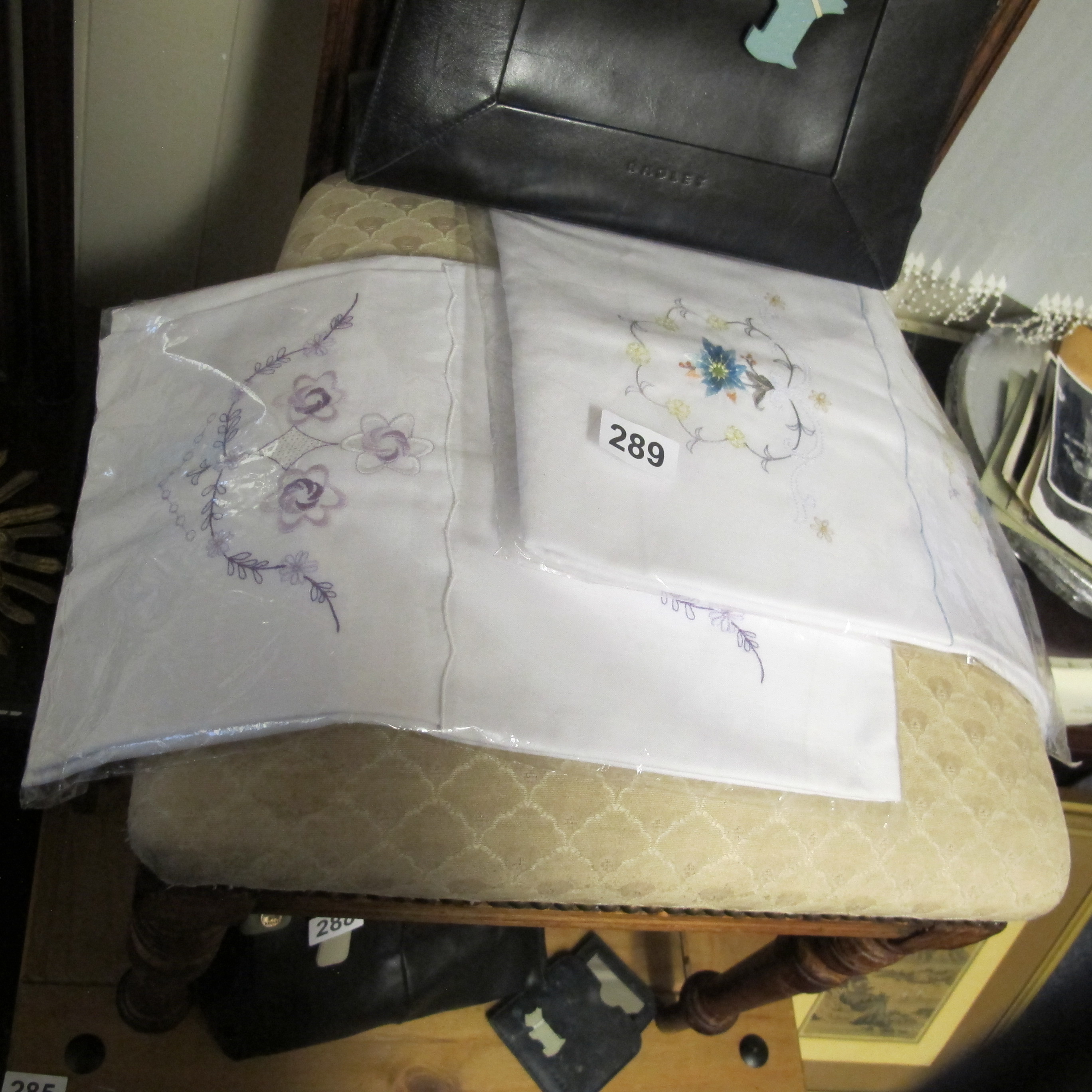 A Pair of Embroidered White Linen table cloth