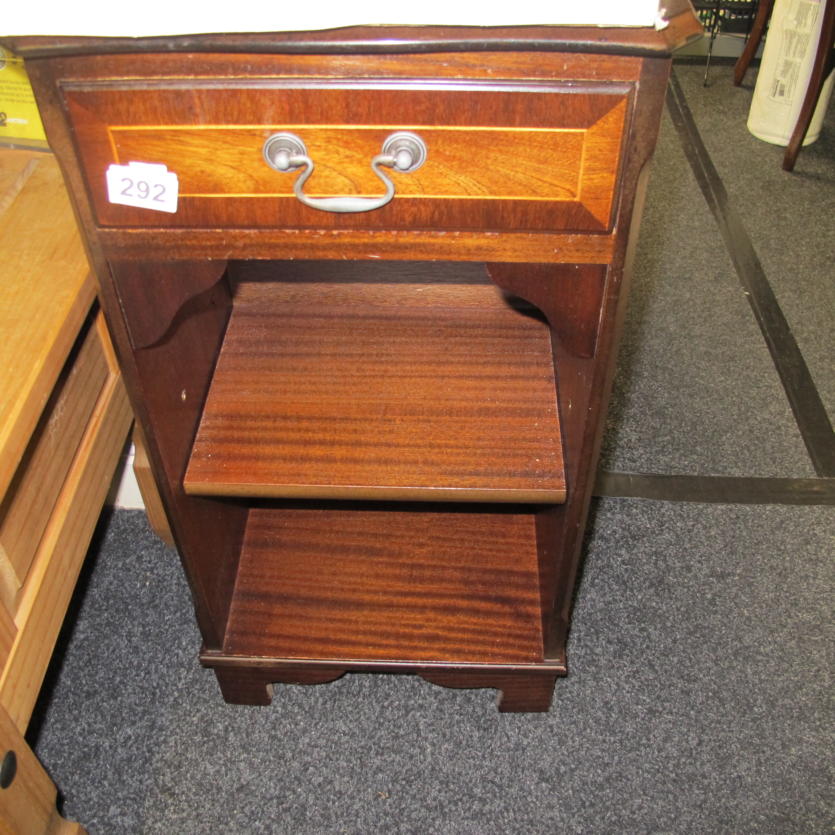 A Vintage Yew Wood Side Table with Single Drawer and Open Shelves