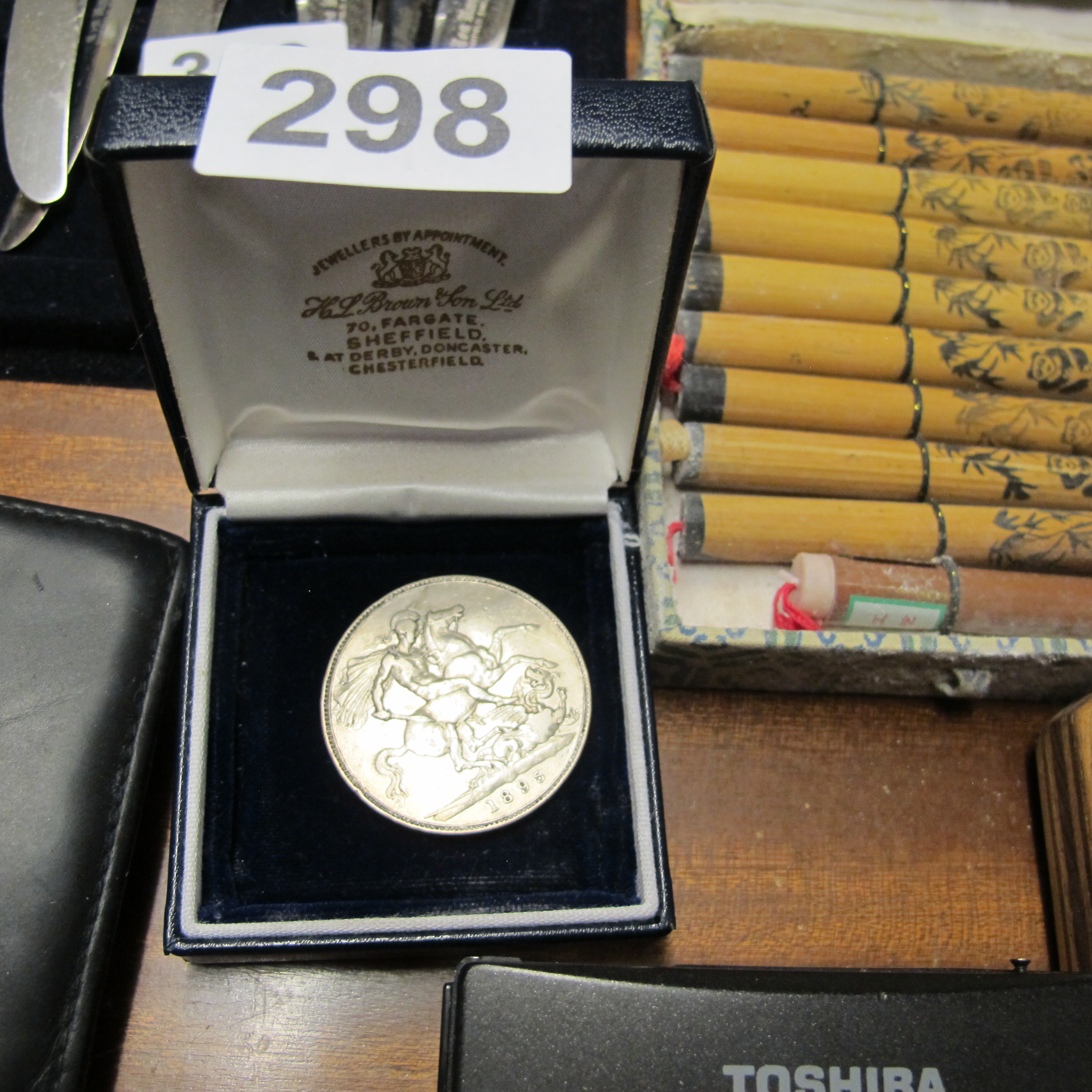 A Solid Silver British 1896 Commemorative Coin or Medal, depicting Saint George and the Dragon, in an H.L. Brown Son Ltd Presentation Case 28.08g
