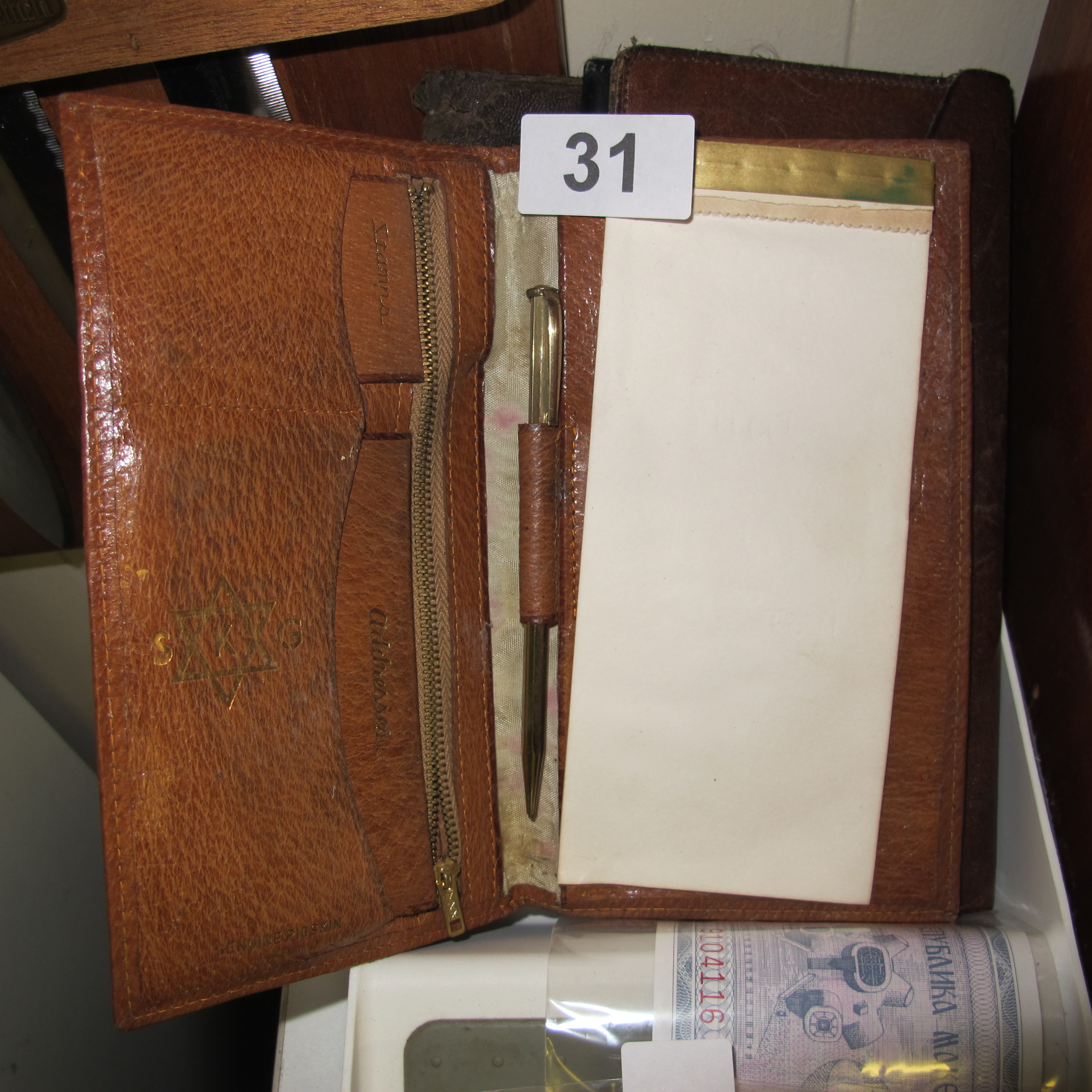 Vintage Pigskin Leather Bi-Fold Organizer with Address Book and Notepad