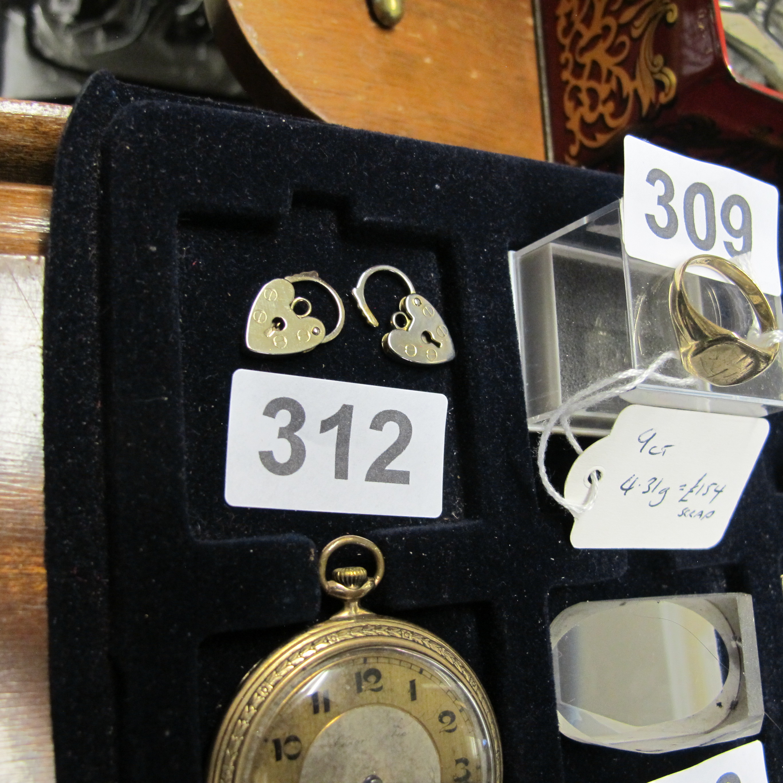 A Collection of Gold-Toned Jewelry and a Pocket Watch