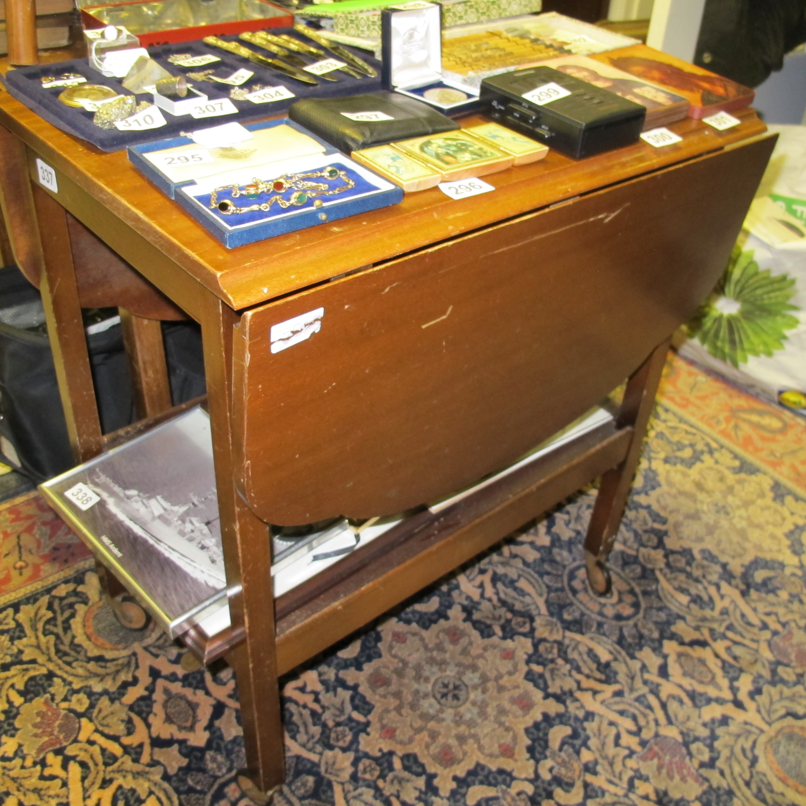 Mid-Century Mahogany Drop-Leaf Tea Trolley