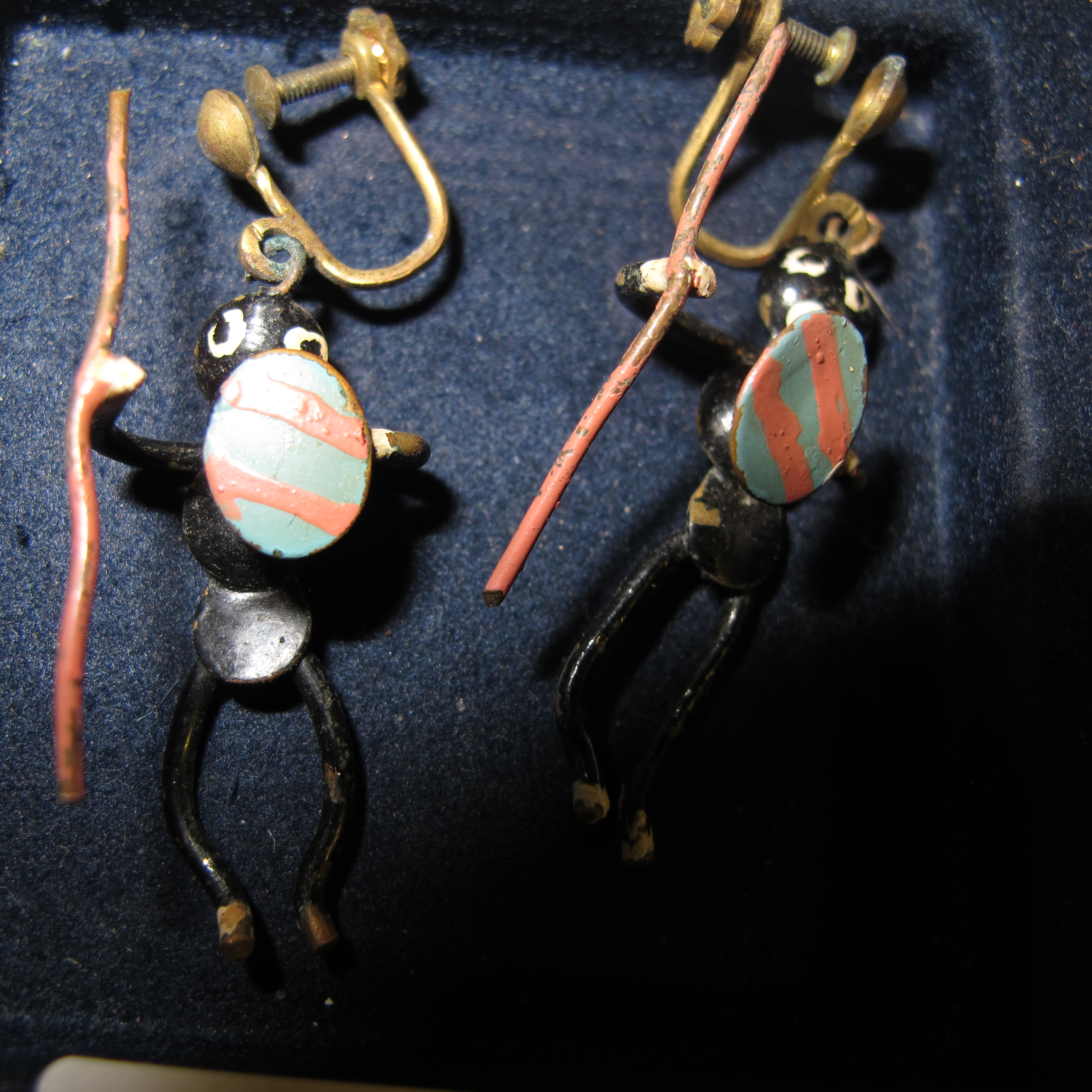 A Pair of rare hand made Charles F. Worth designer collection ‘African Drummers’ Screw-Back Earrings