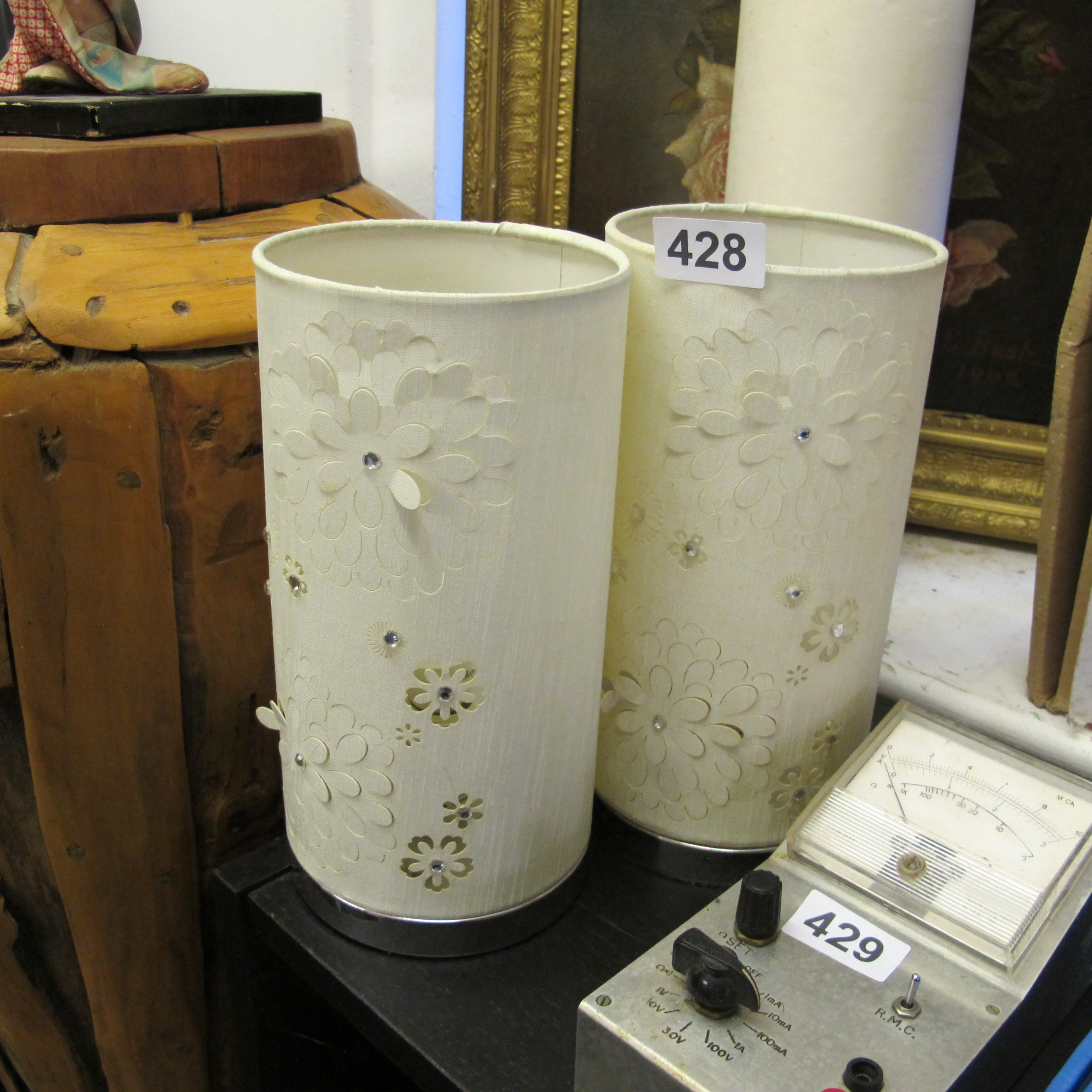 A Pair of Contemporary Table Lamps with Floral Shades