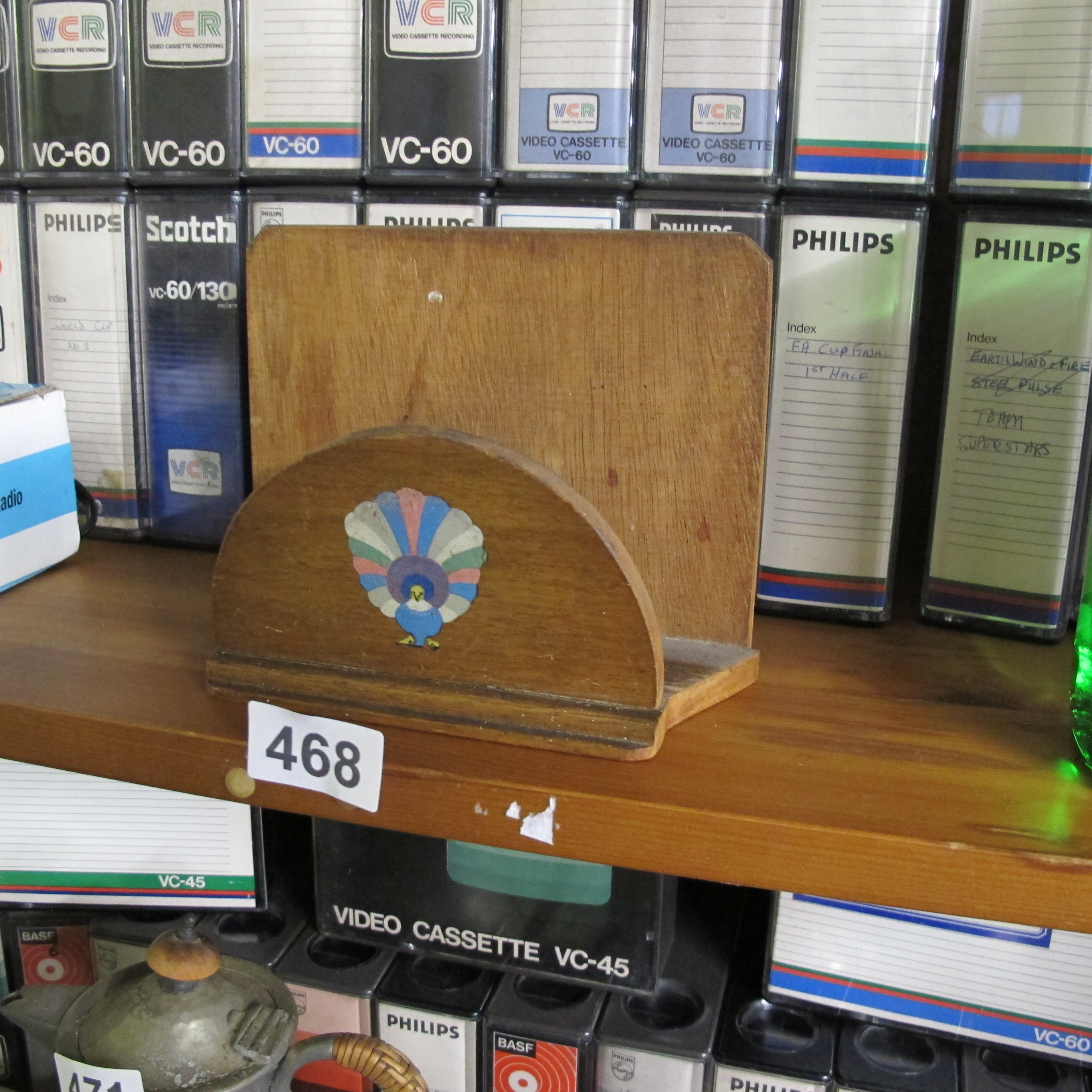 Vintage Wooden Napkin or Letter Holder with Stylized Painted Bird Motif