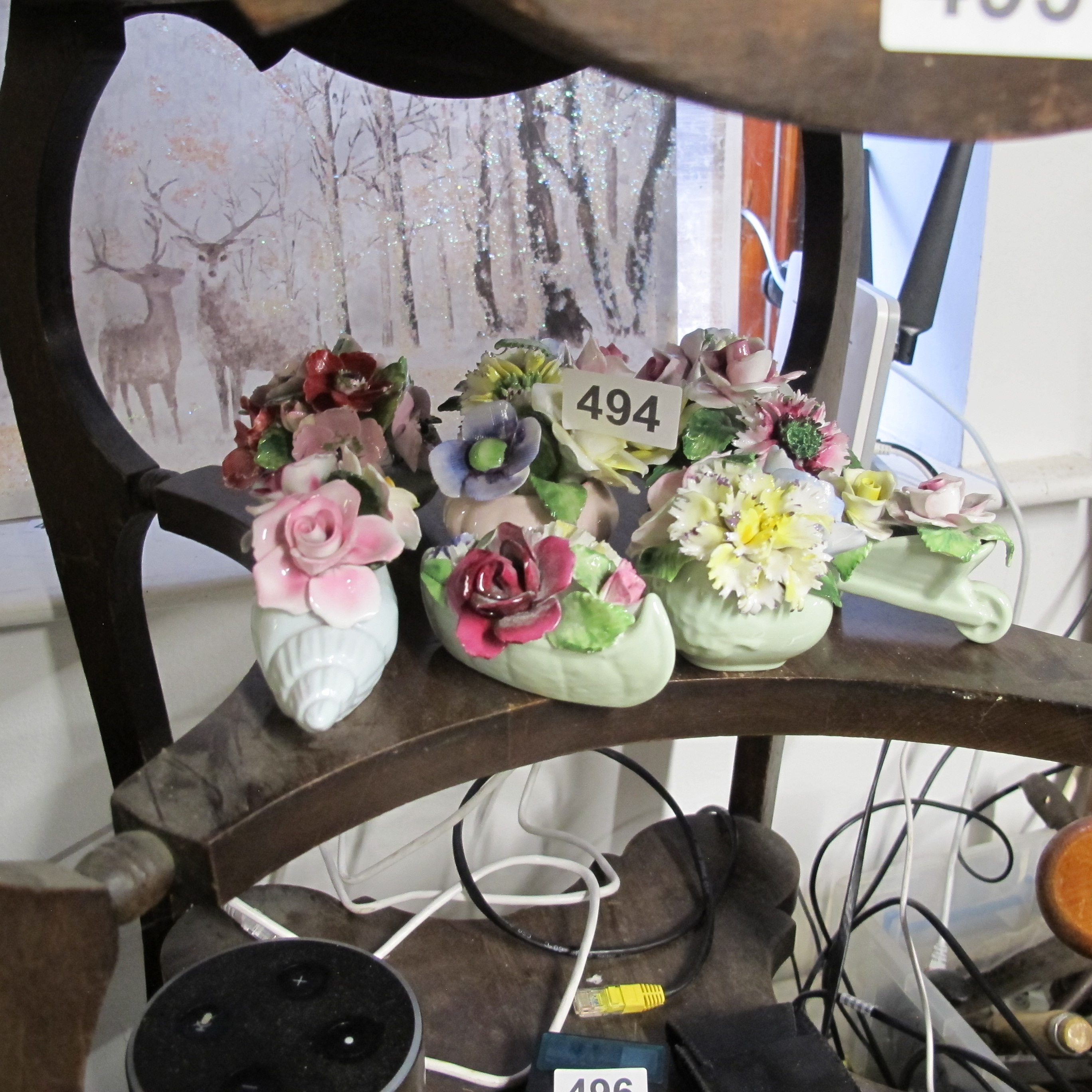 A Collection of Five Decorative Porcelain Floral Arrangements