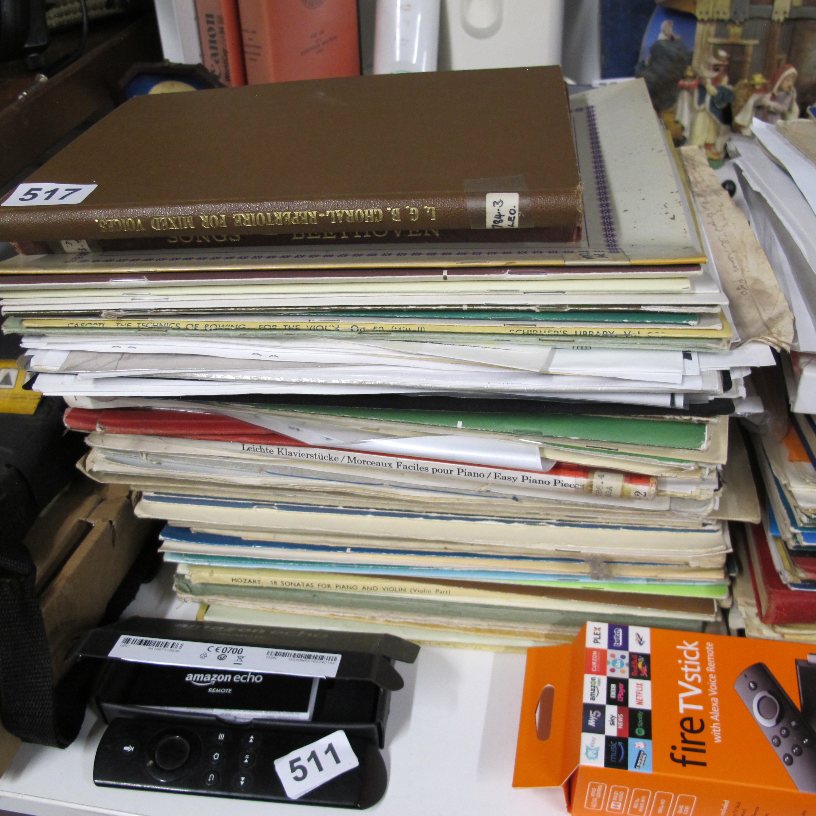 A Collection of Sheet Music and Books with Amazon Electronic Devices