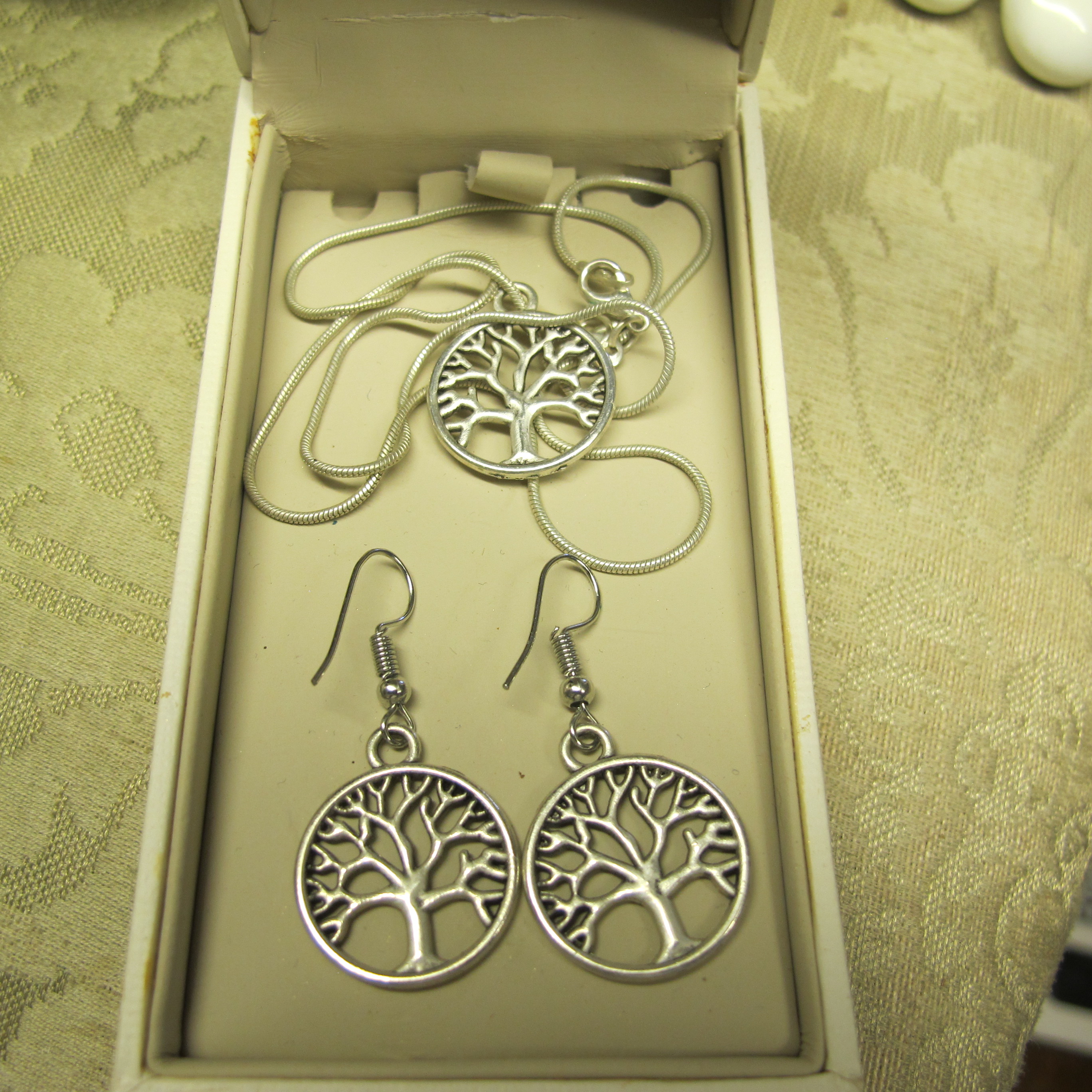 A Contemporary Three-Piece Silver-Toned ‘Tree of Life’ Jewelry Set