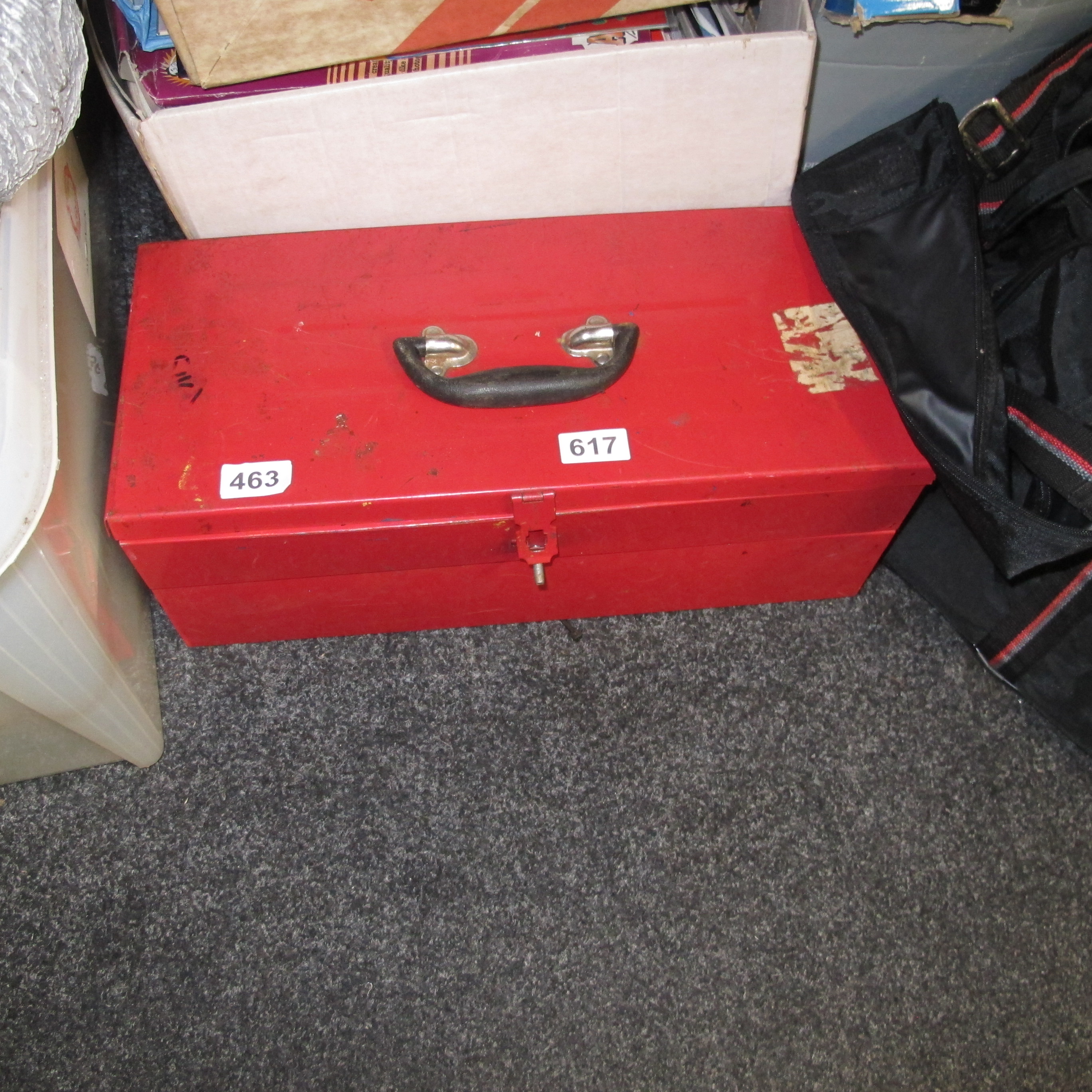 A Red Painted Metal Toolbox