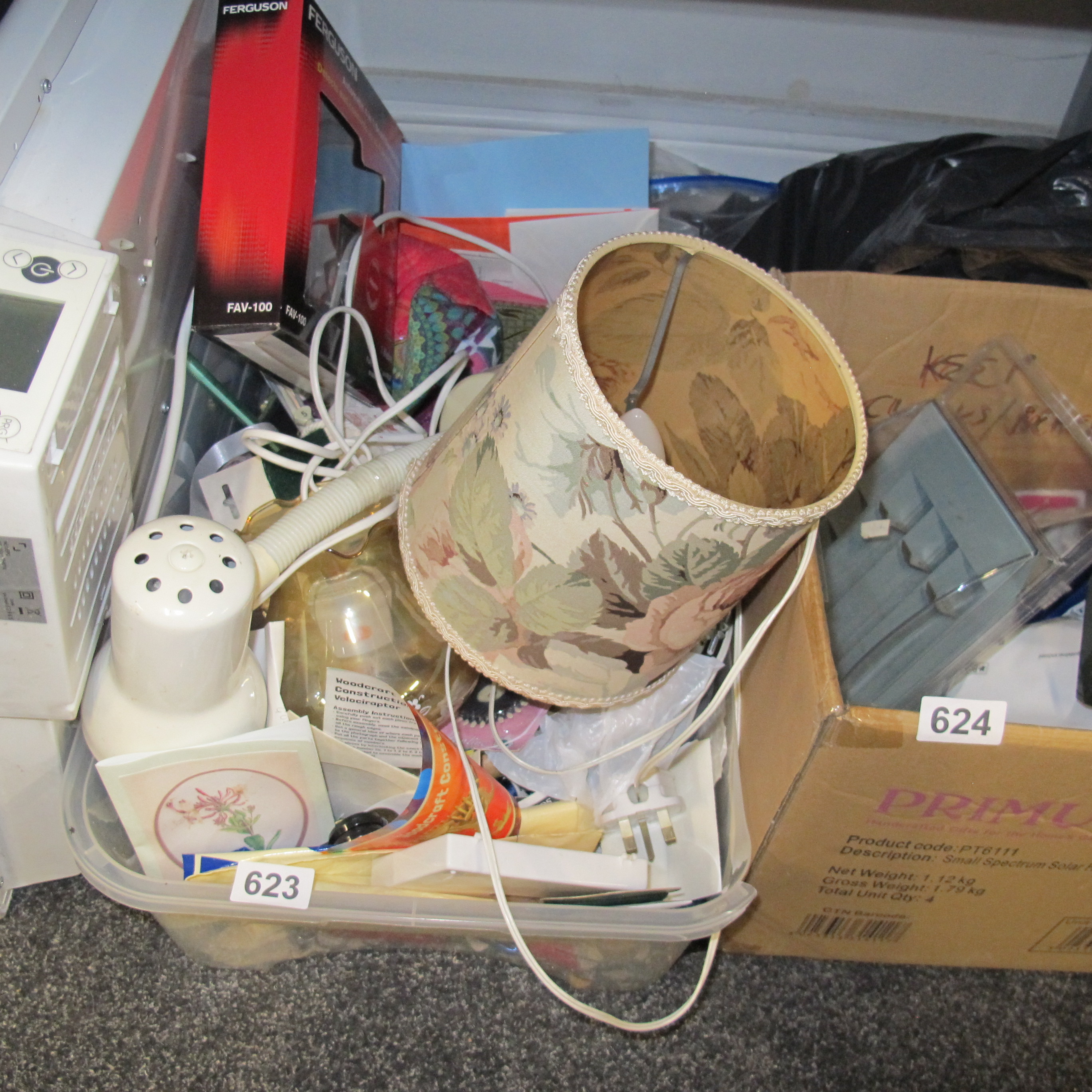 A Collection of Domestic Items, including a Vintage-Style Floral Lampshade, Ferguson FAV-100, and Boxed Prima ‘Small Spectrum Solar’ Units