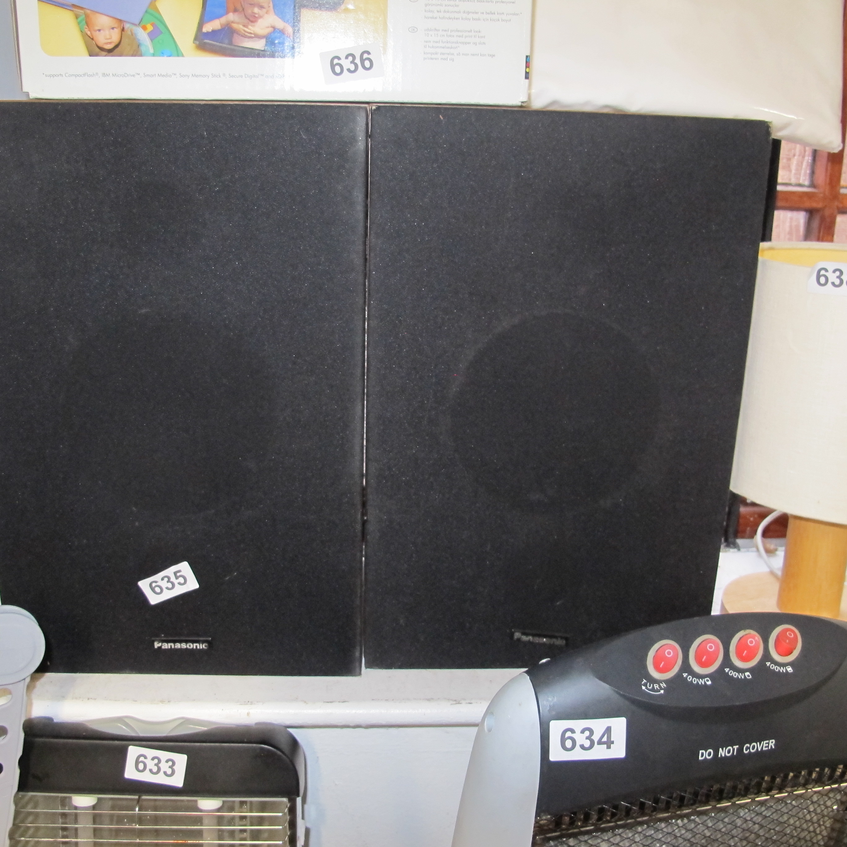A Pair of Panasonic Bookshelf Speakers, A Pair of Electric Heaters, A Digital Photo Printer, and A Table Lamp
