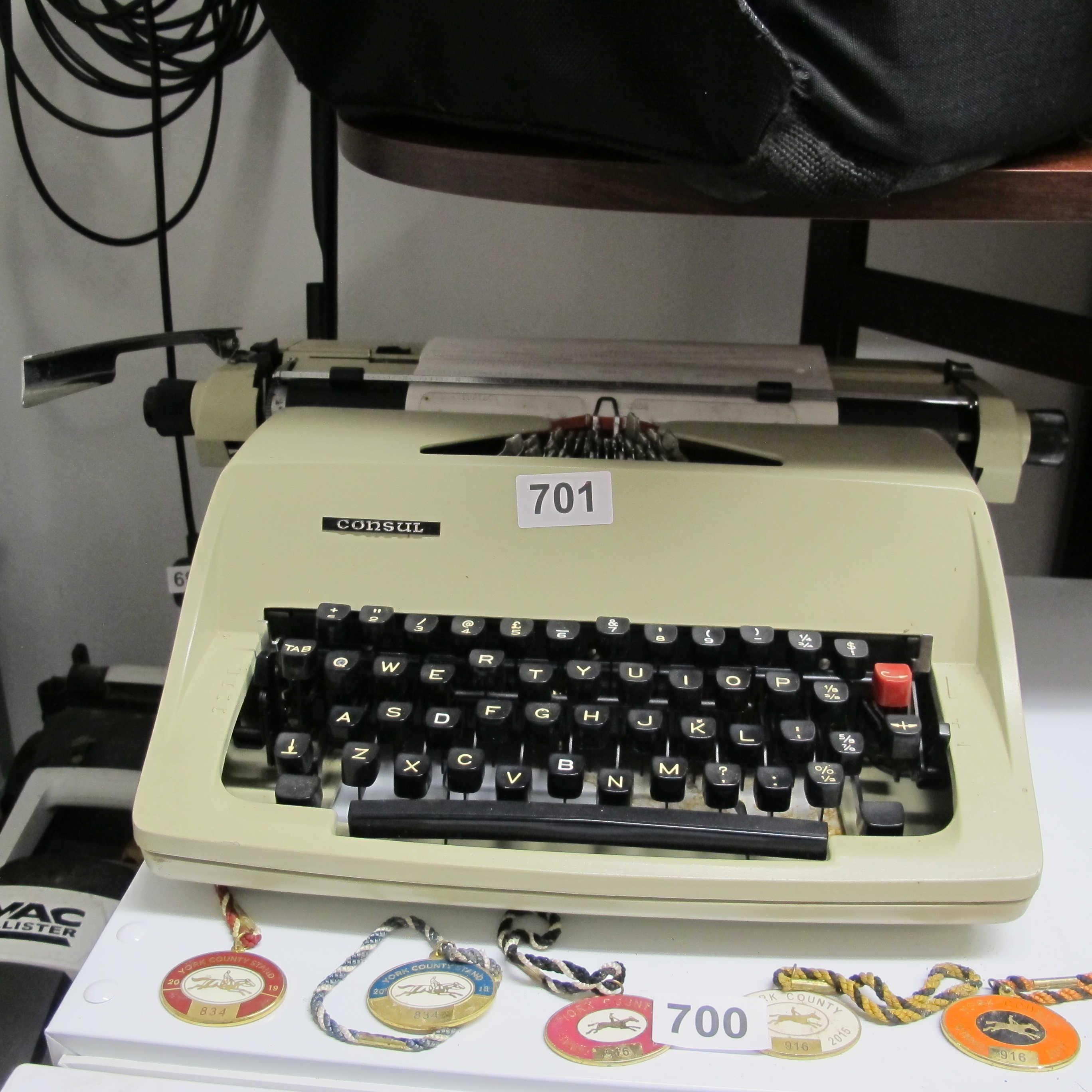 A Consul 2224 Portable Typewriter with a Group of York County Stand Medallions