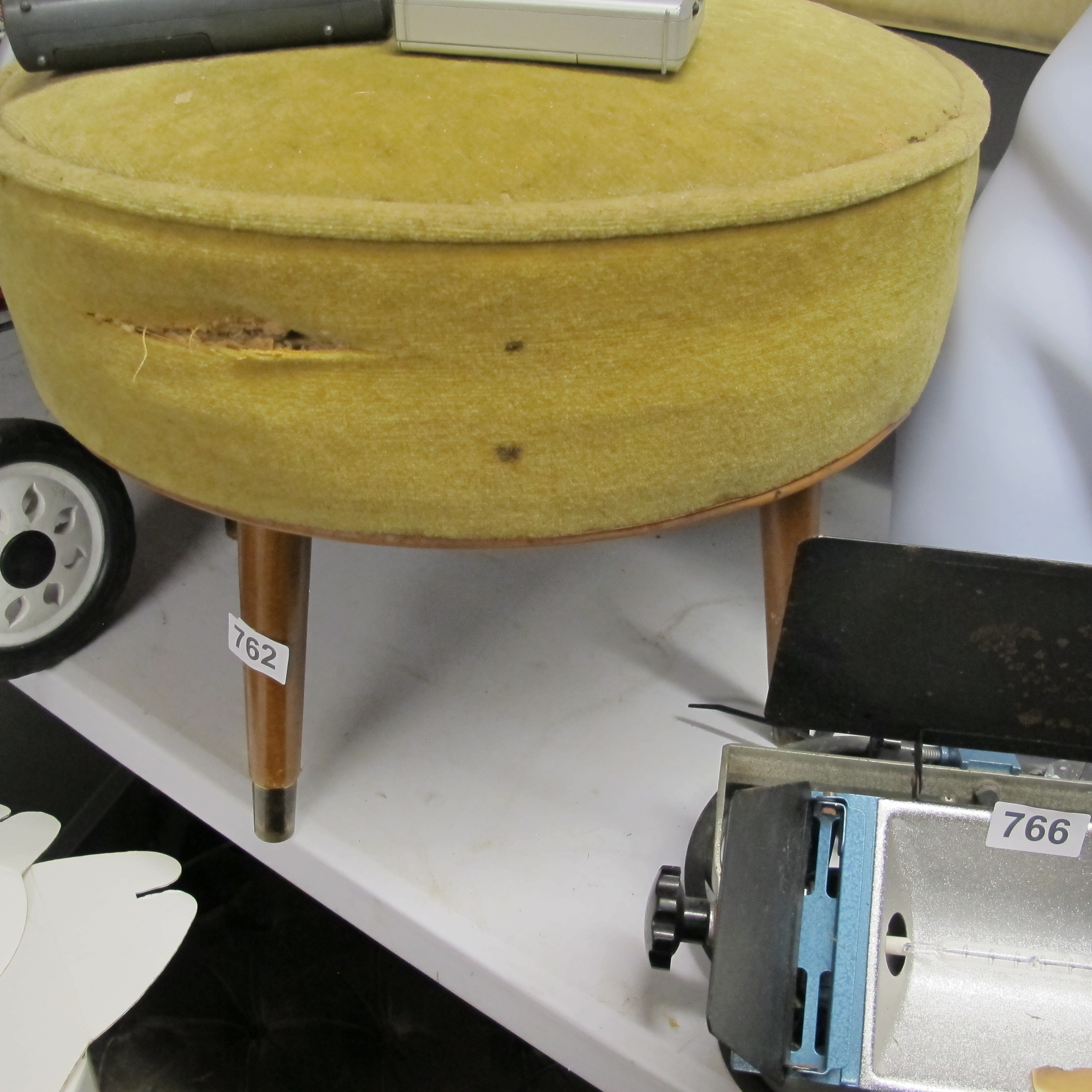 A Mid-20th Century Upholstered Round Ottoman or Stool