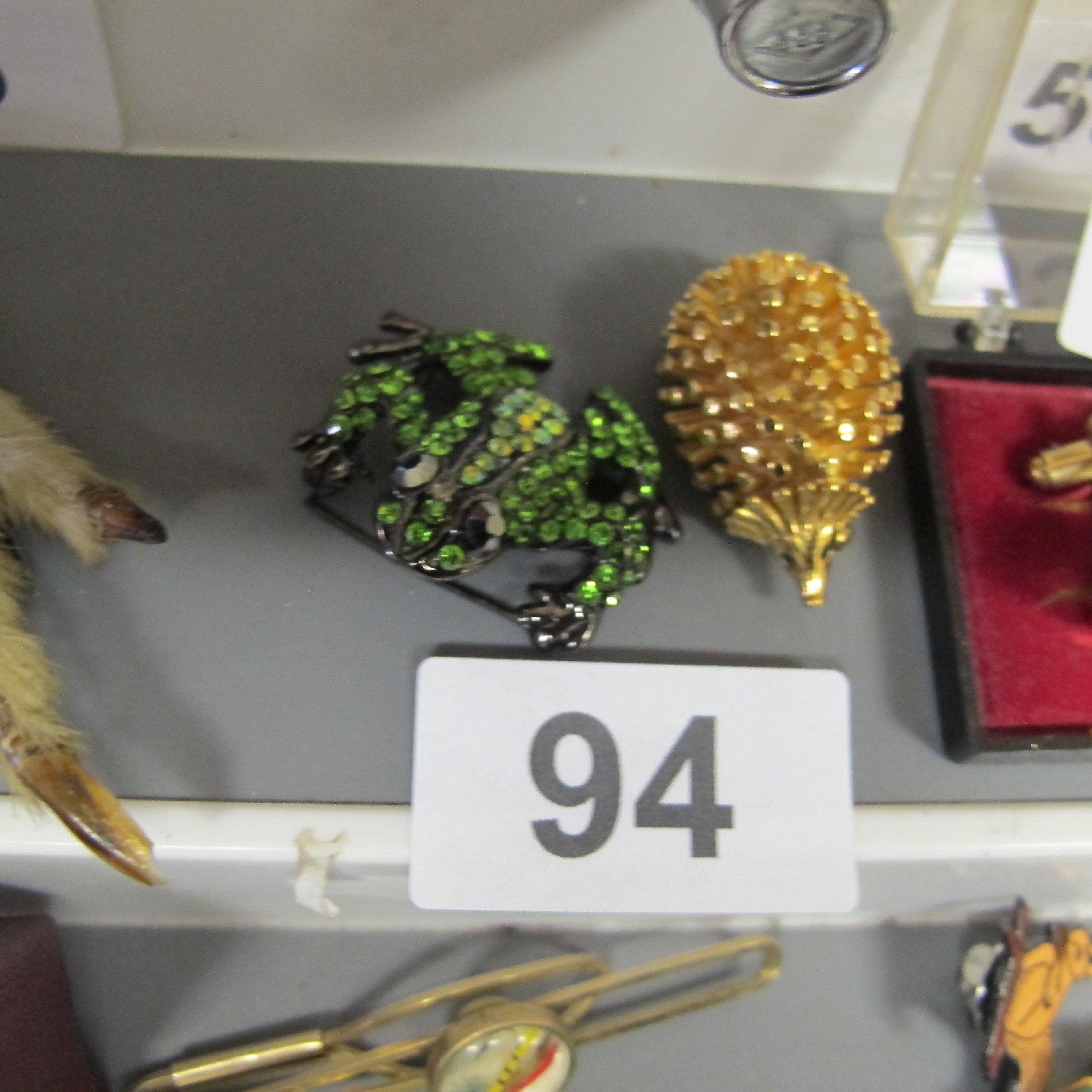 A Pair of Costume Brooches, comprising a Green Rhinestone Frog and a Gold-Tone hedgehog