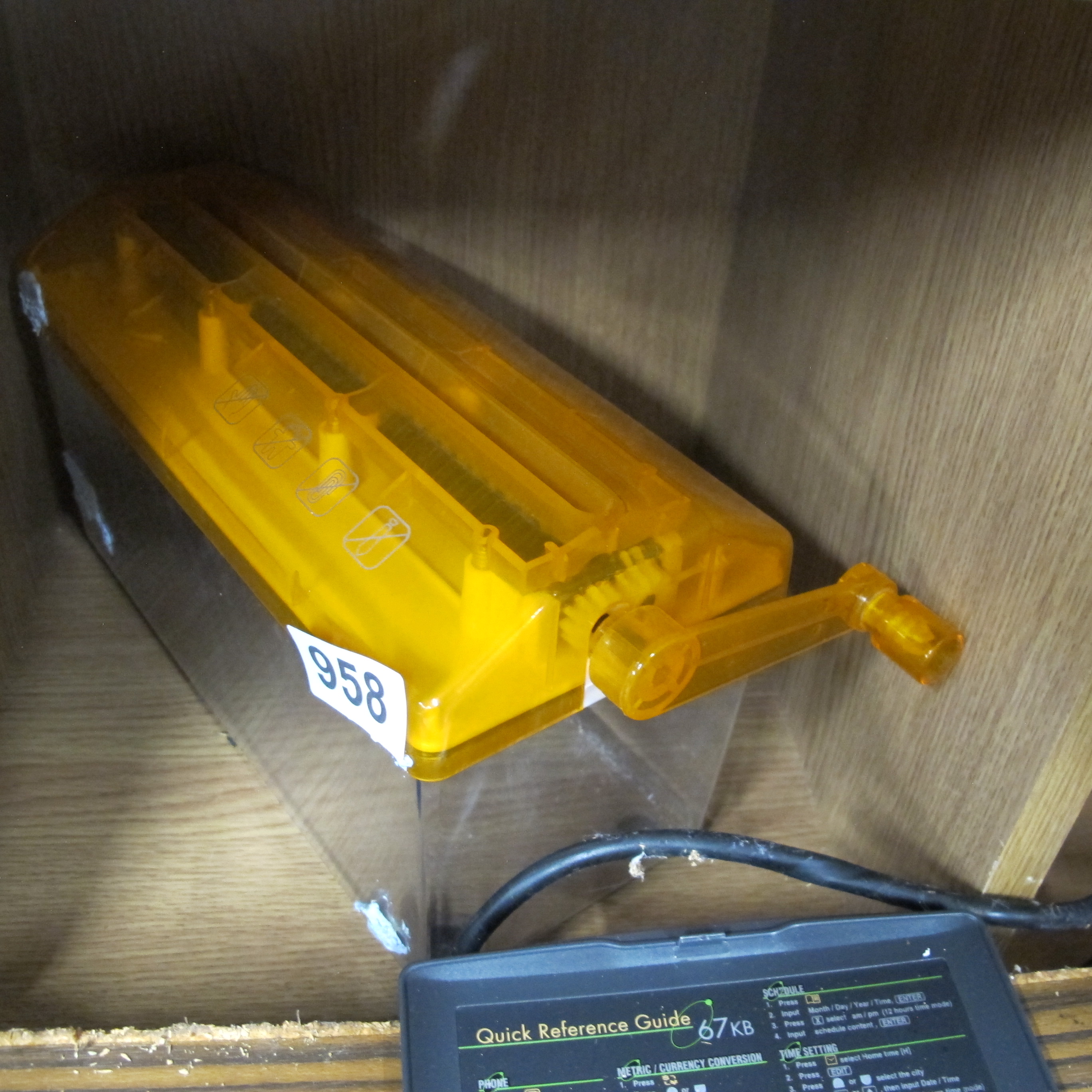 A Modern Transparent Yellow Plastic Manual Hand Crank Paper Shredder