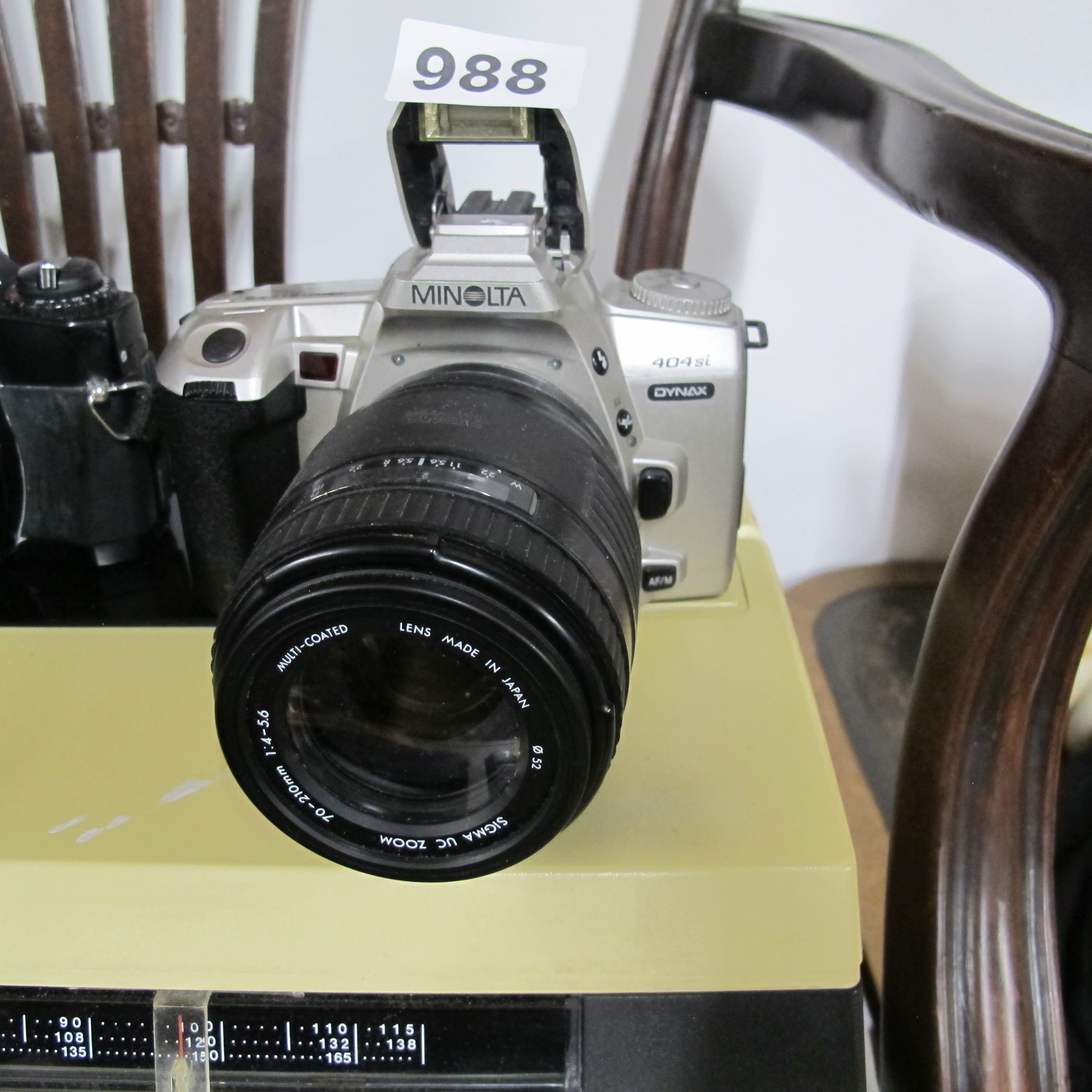 Late 20th Century Minolta Dynax 404si 35mm Film SLR Camera with Sigma UC Zoom 70-210mm Lens