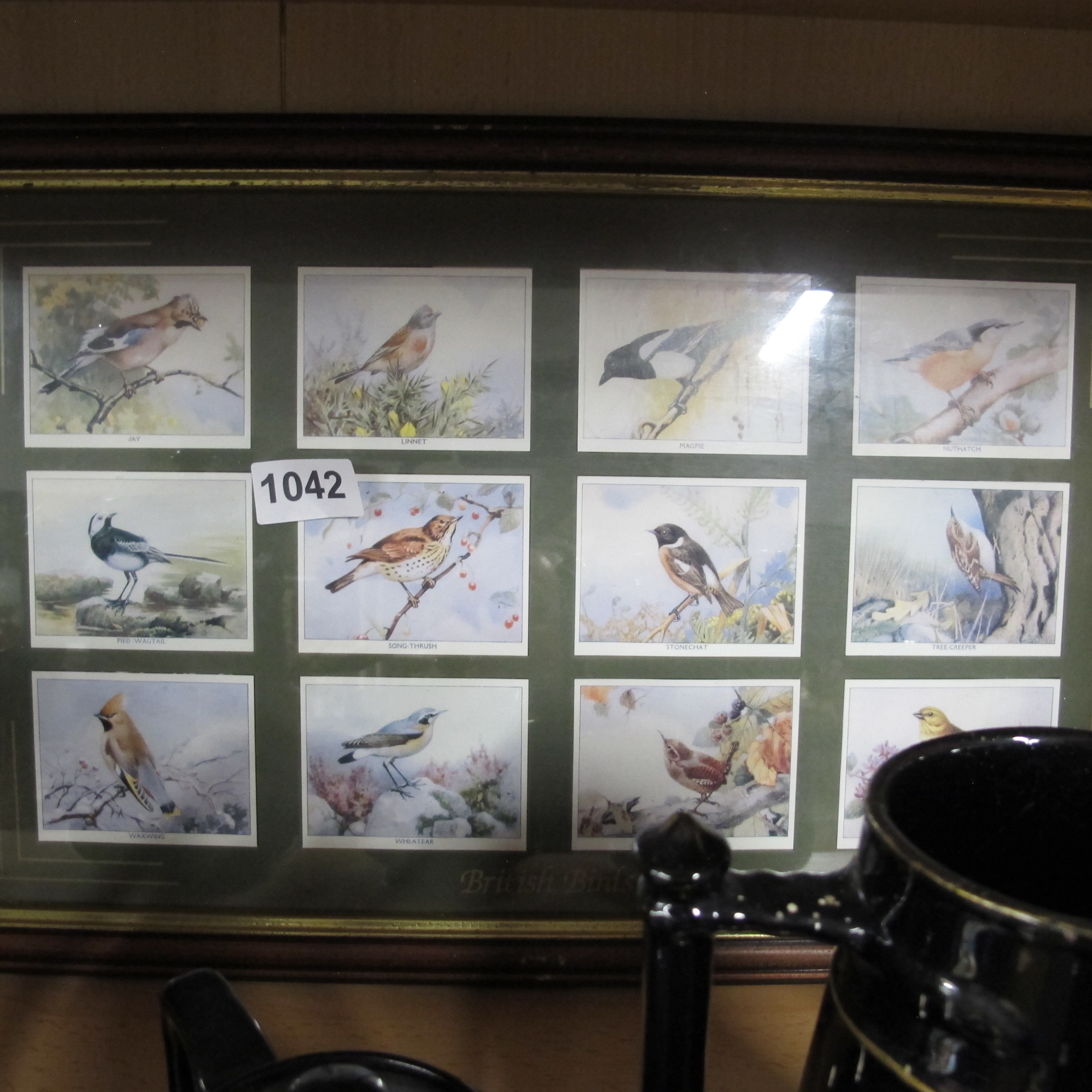 British Birds, Framed Set of 12 Vintage Trade Cards, Circa 1930s-1950s