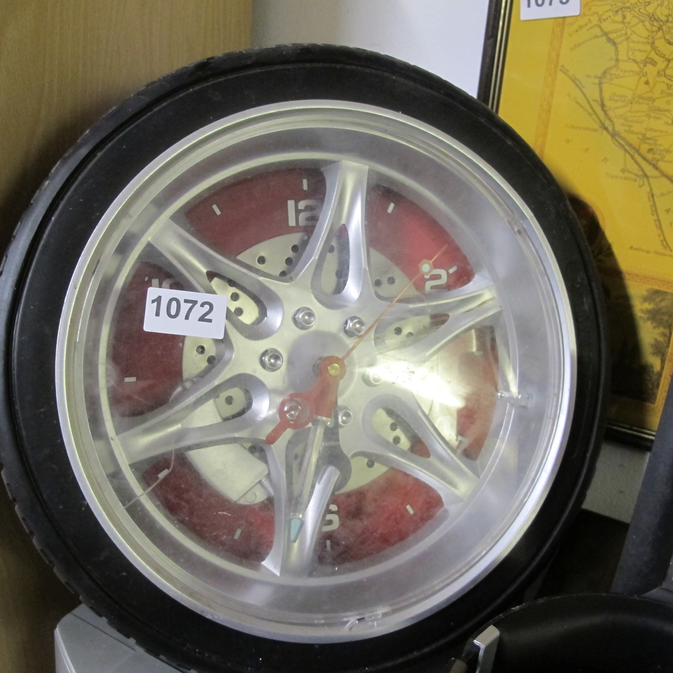 Contemporary Novelty Automotive Tire and Racing Rim Wall Clock