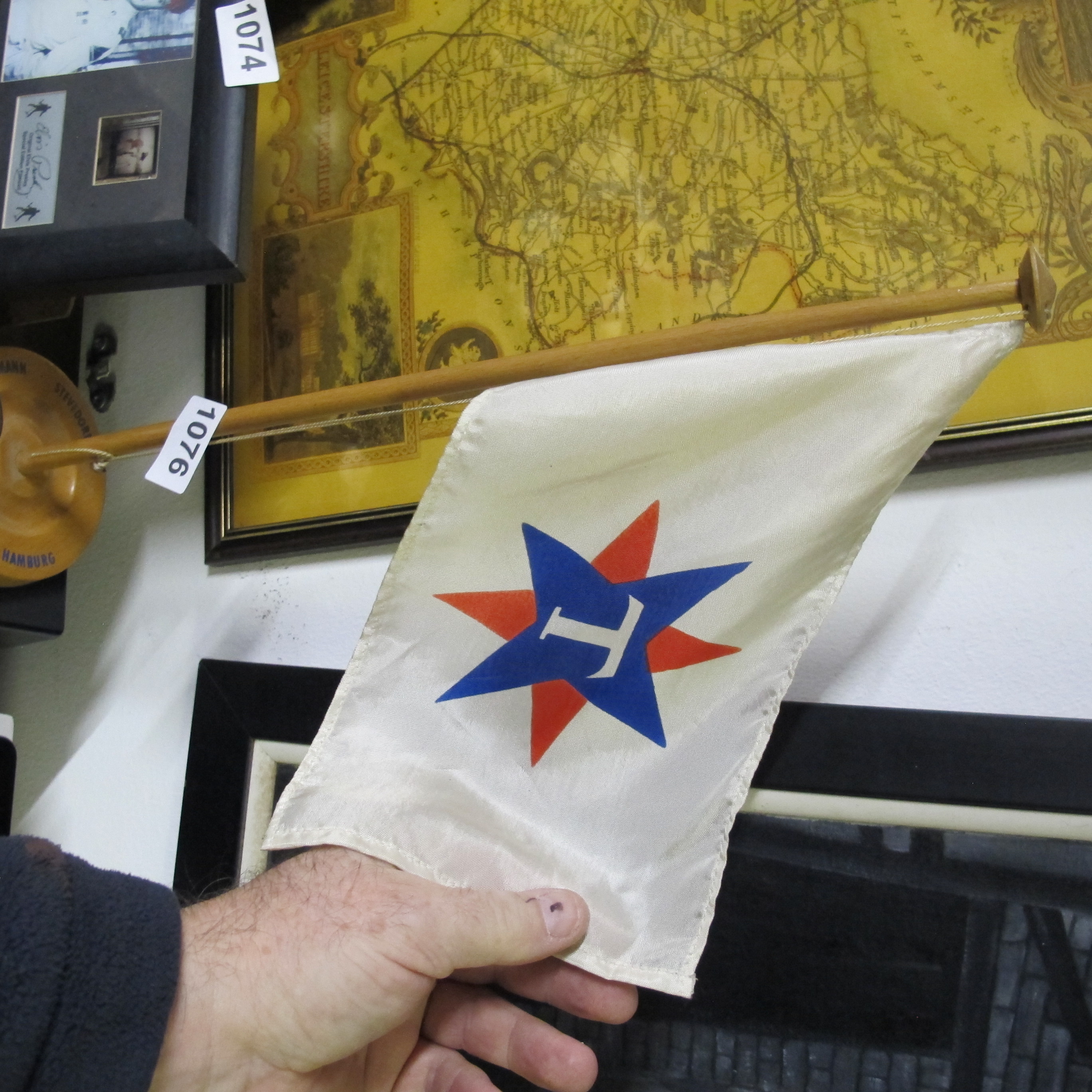 Thoresen Line Maritime House Flag Burgee on Wooden Dowel, Mid-20th Century