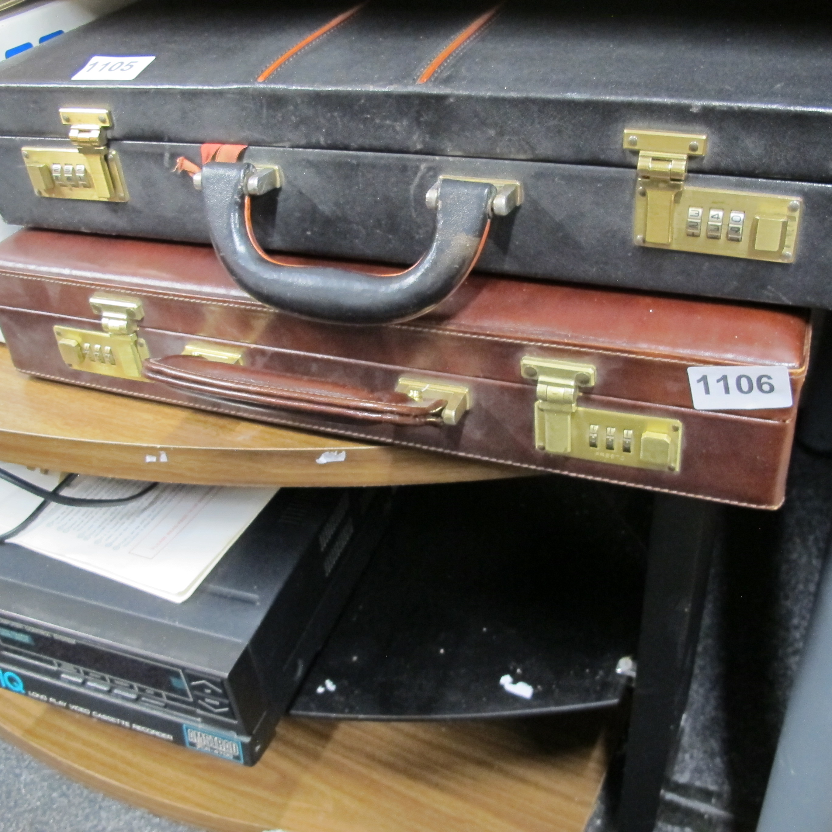 Unknown Maker, Hard-Sided Attache Briefcase, Black Leather with Tan Stripes
