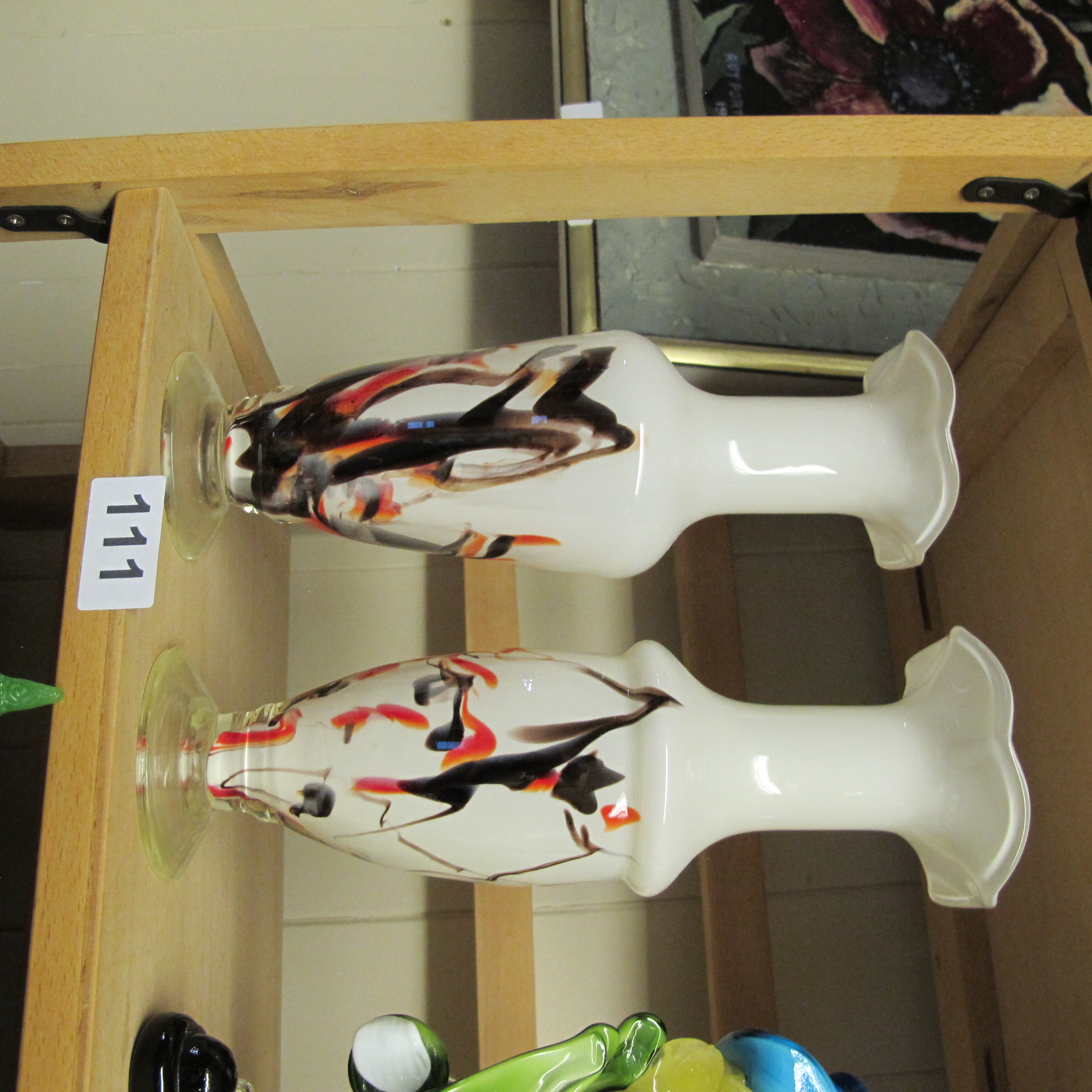 Murano Style Hand-Blown Lattimo, Pair of Vases