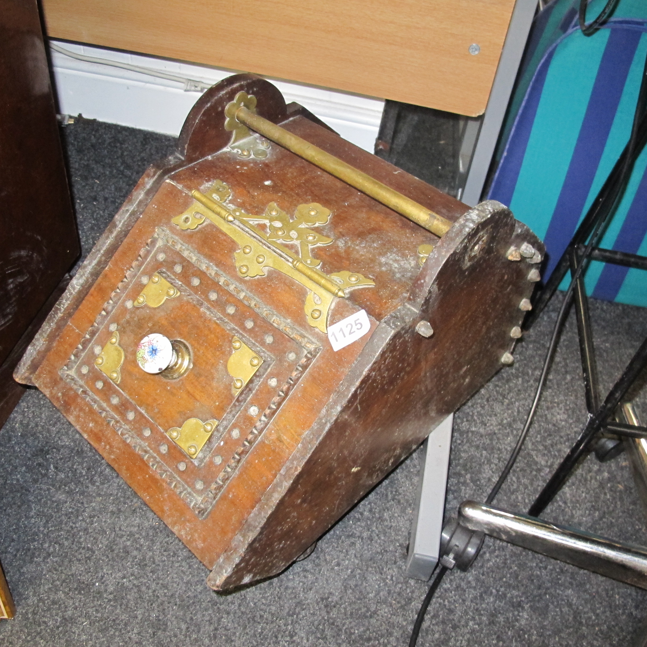 Late Victorian Oak Coal Scuttle with Brass Mounts and Porcelain Knob, circa 1880