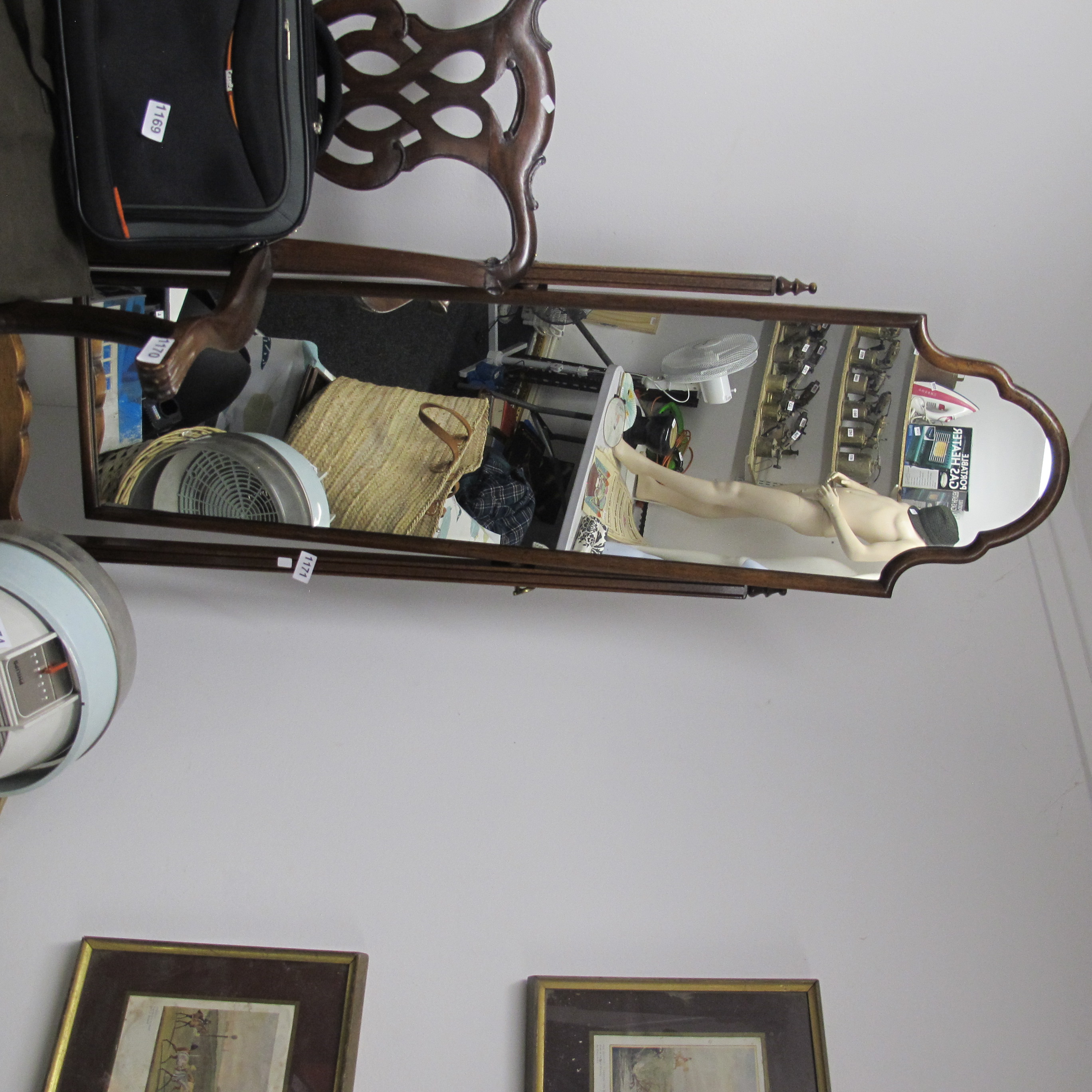 Late Victorian Style Mahogany Cheval Mirror and Georgian Style Side Chair with Decorative Accents