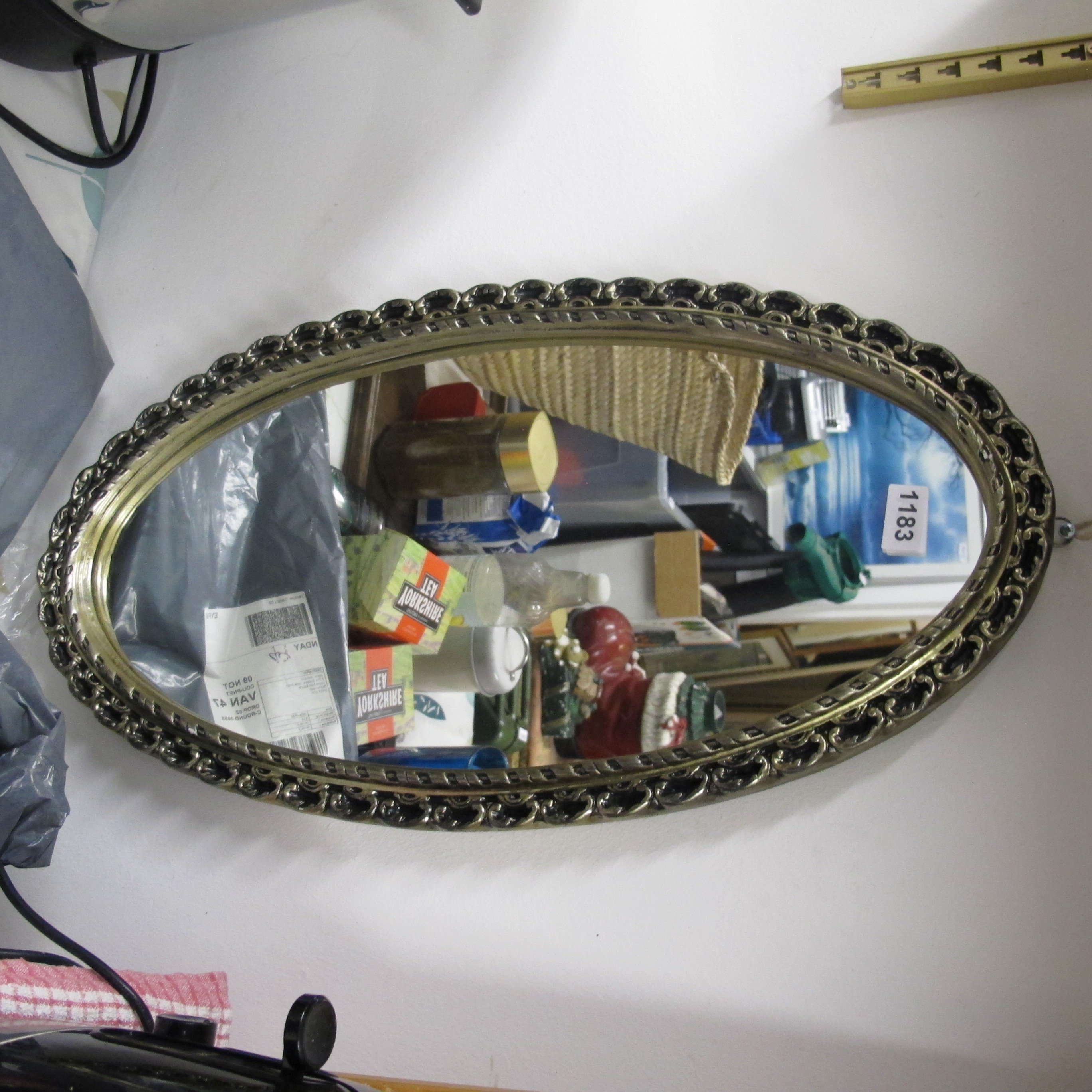 Vintage Mid-Century Modern Oval Gold-Tone Filigree Mirrored Vanity Tray or Wall Mirror
