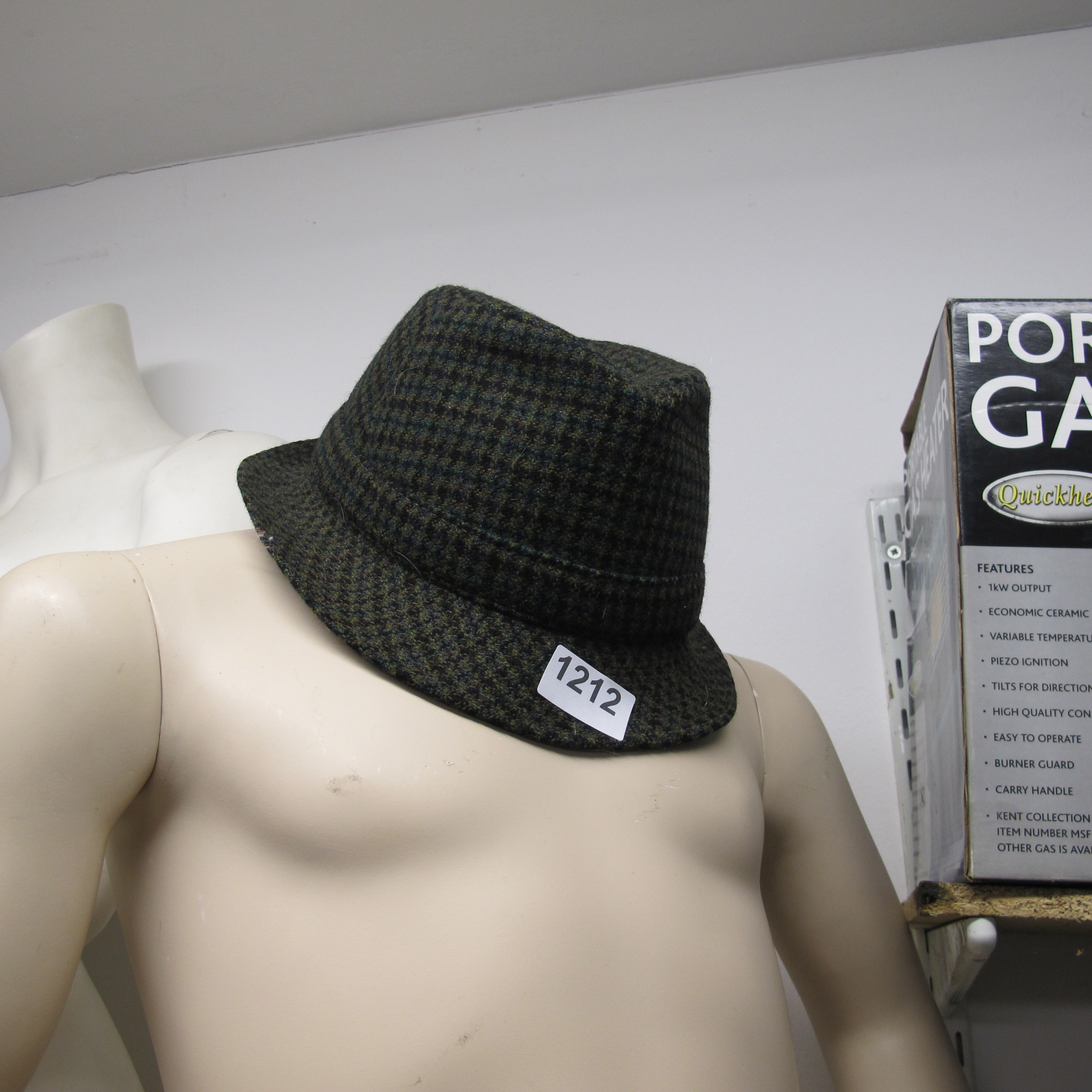 Unbranded Men’s Trilby Hat, Wool Tweed, Forest Green and Navy Check Pattern