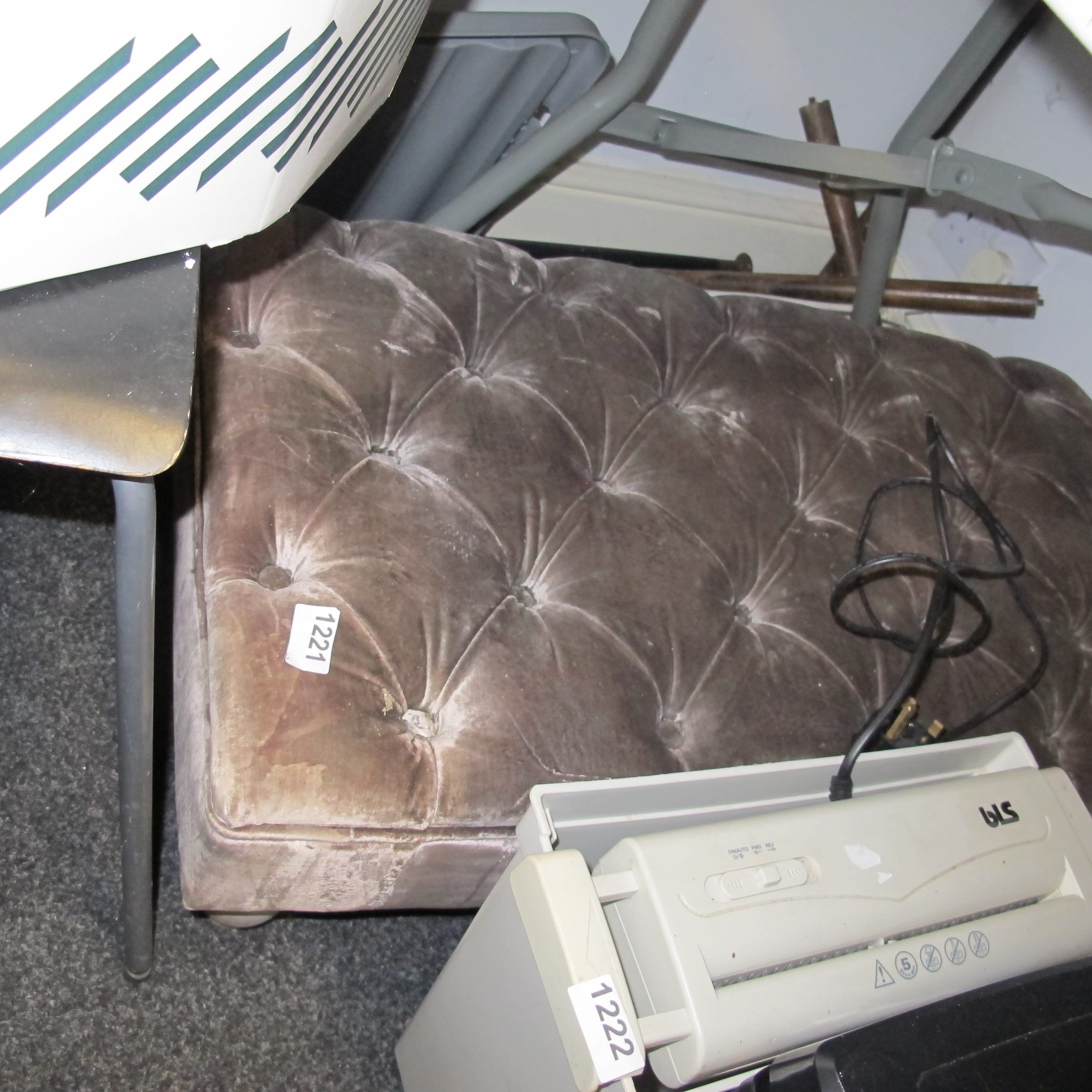GLS Electric Paper Shredder and Rectangular Button-Tufted Mauve Velvet-Style Ottoman