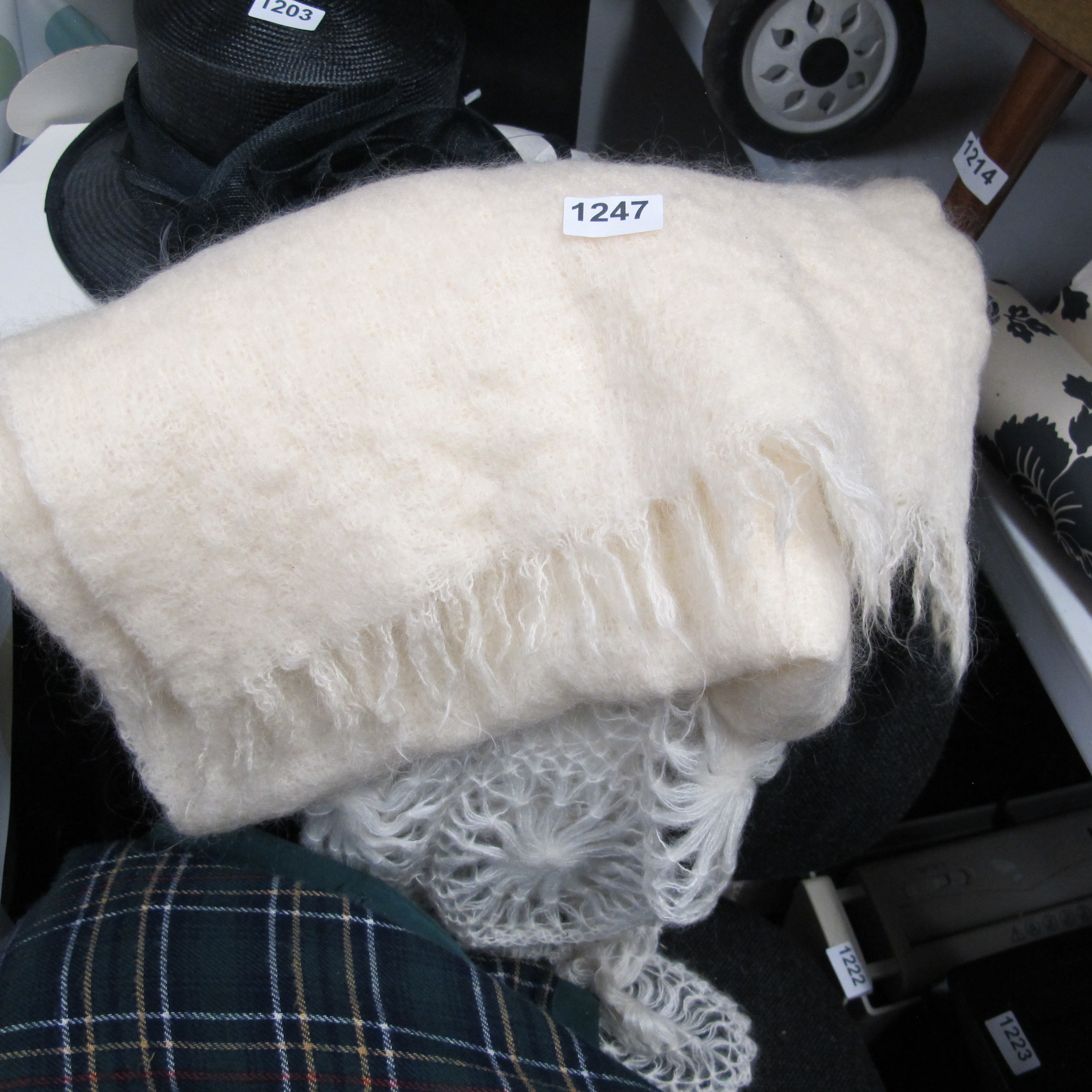 Vintage Mohair Blend Fringed scarf and Crocheted Spider-Web Lace Shawl