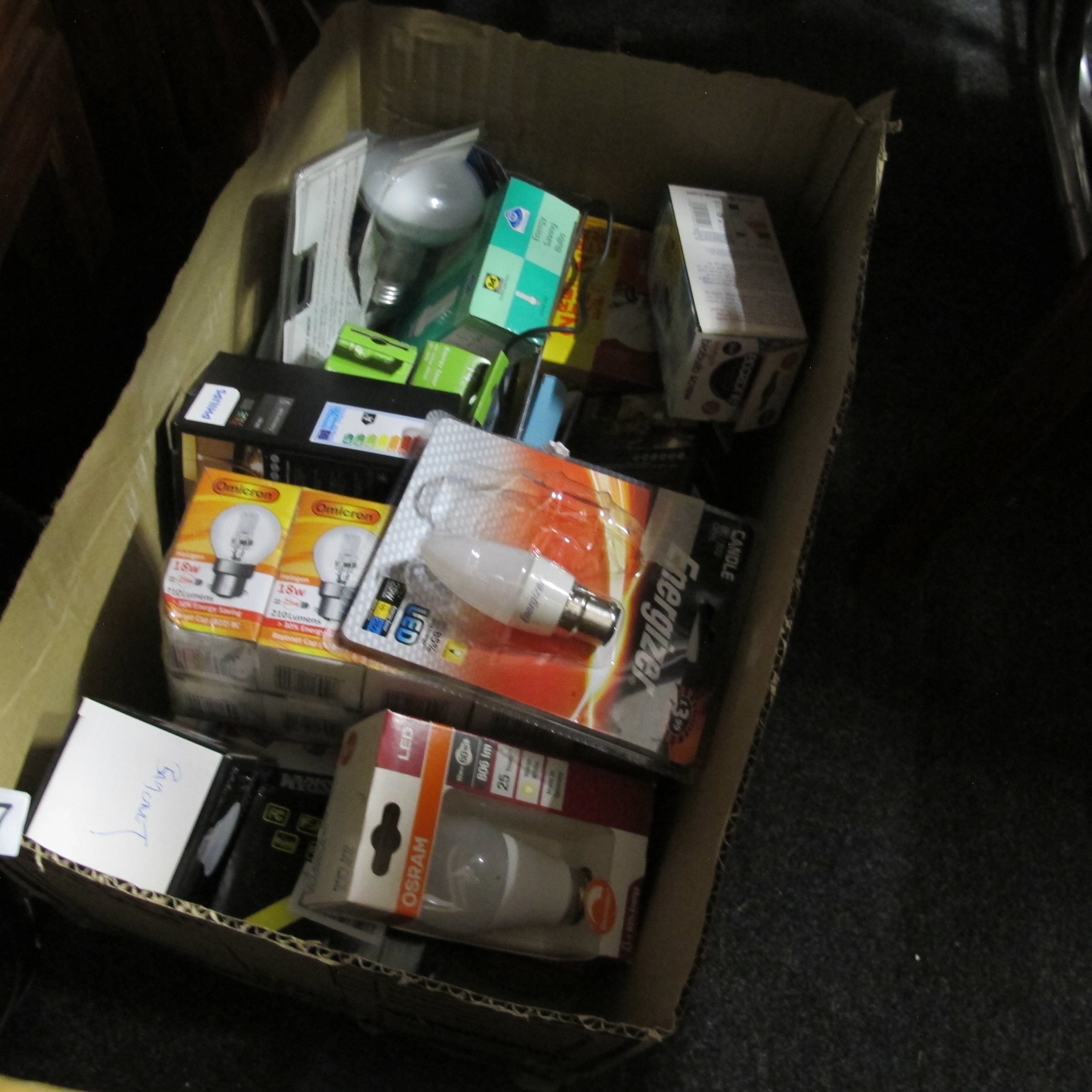 Philips, OSRAM, and Energizer Assorted Contemporary Light Bulbs, Box Lot of Approximately 20 Units