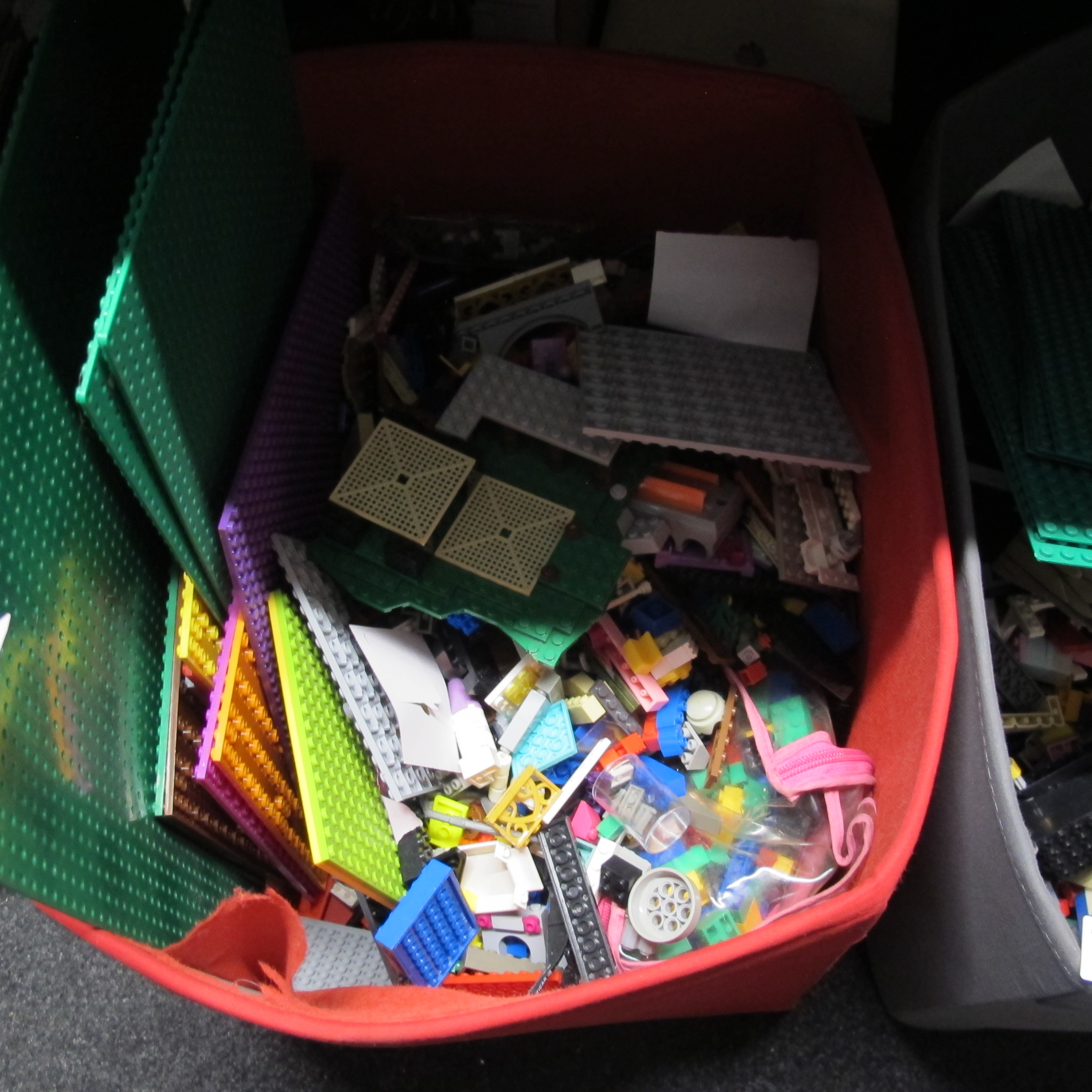 A box of unbranded Lego compatible blocks