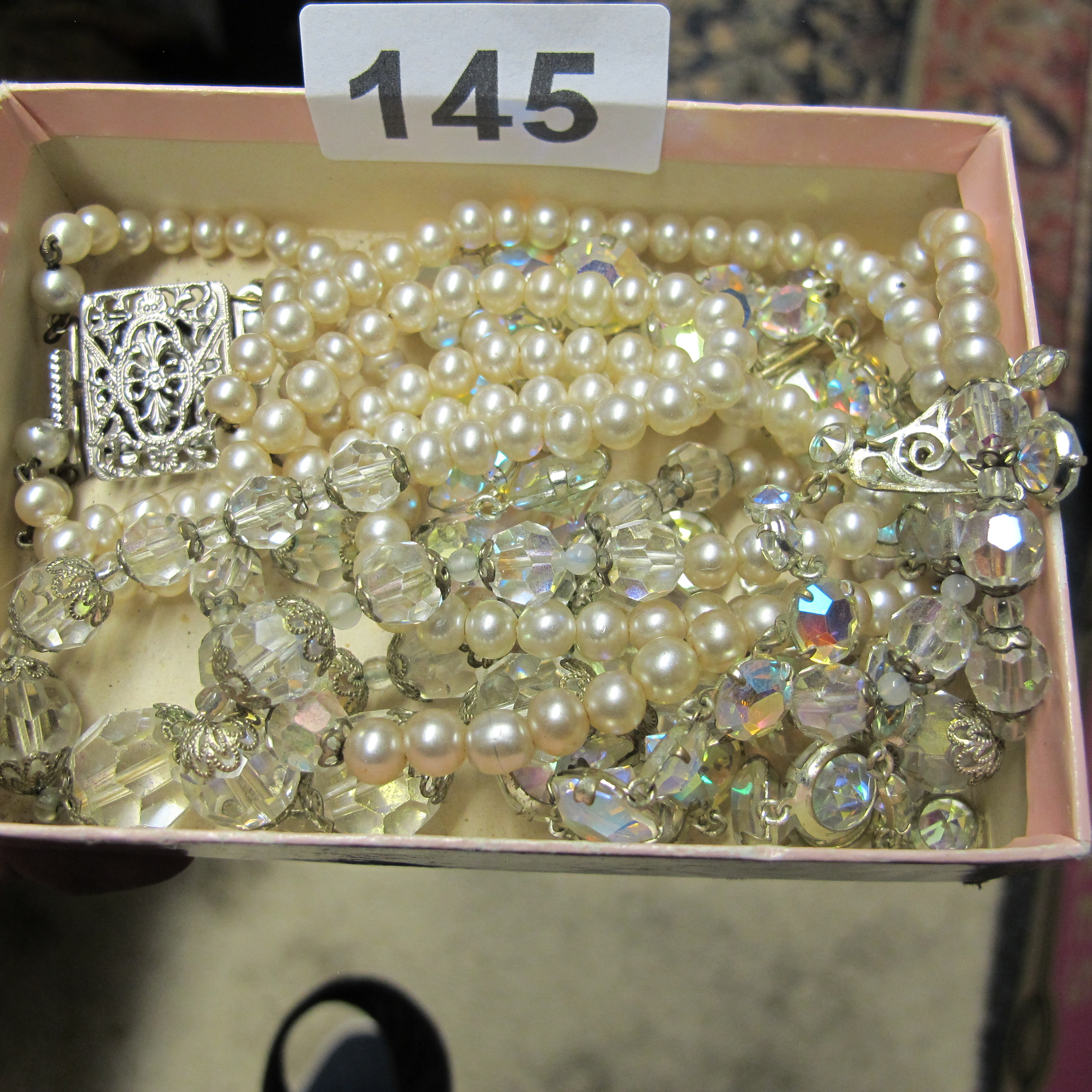 Silver-Tone Multi-Strand Necklace Collection with Simulated Pearls and Aurora Borealis Crystals