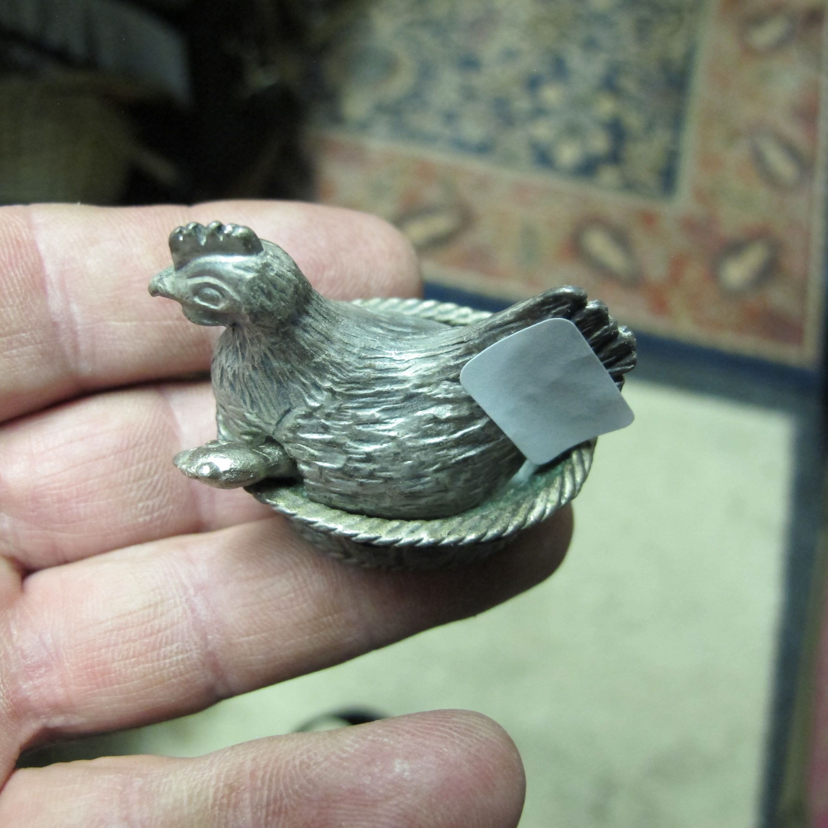Vintage Silver-Toned Metal Miniature Hen on Nest Figural Trinket Box