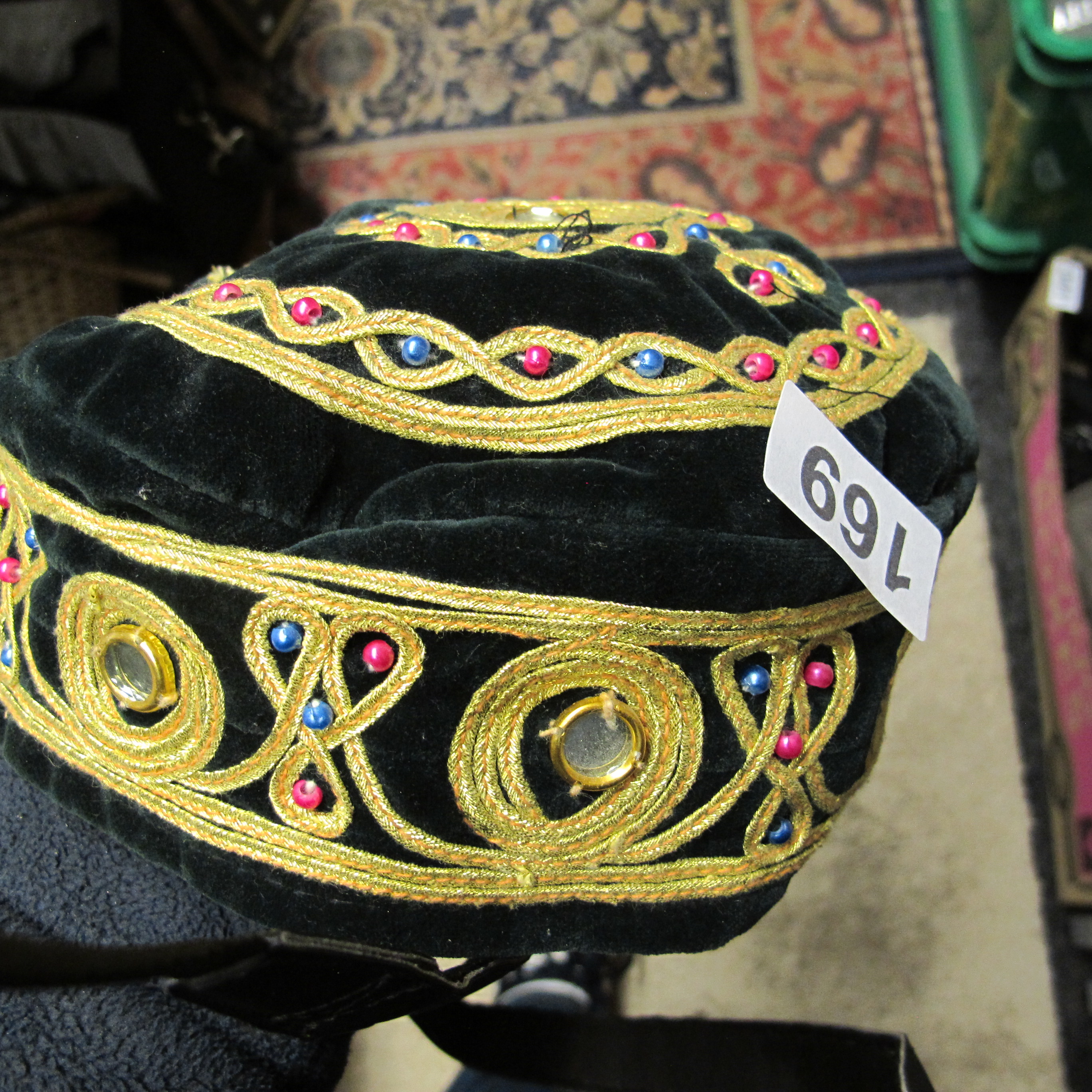 Artisanal, Bukharian Style Cap, Gold and Mirror Embroidered Black Velvet