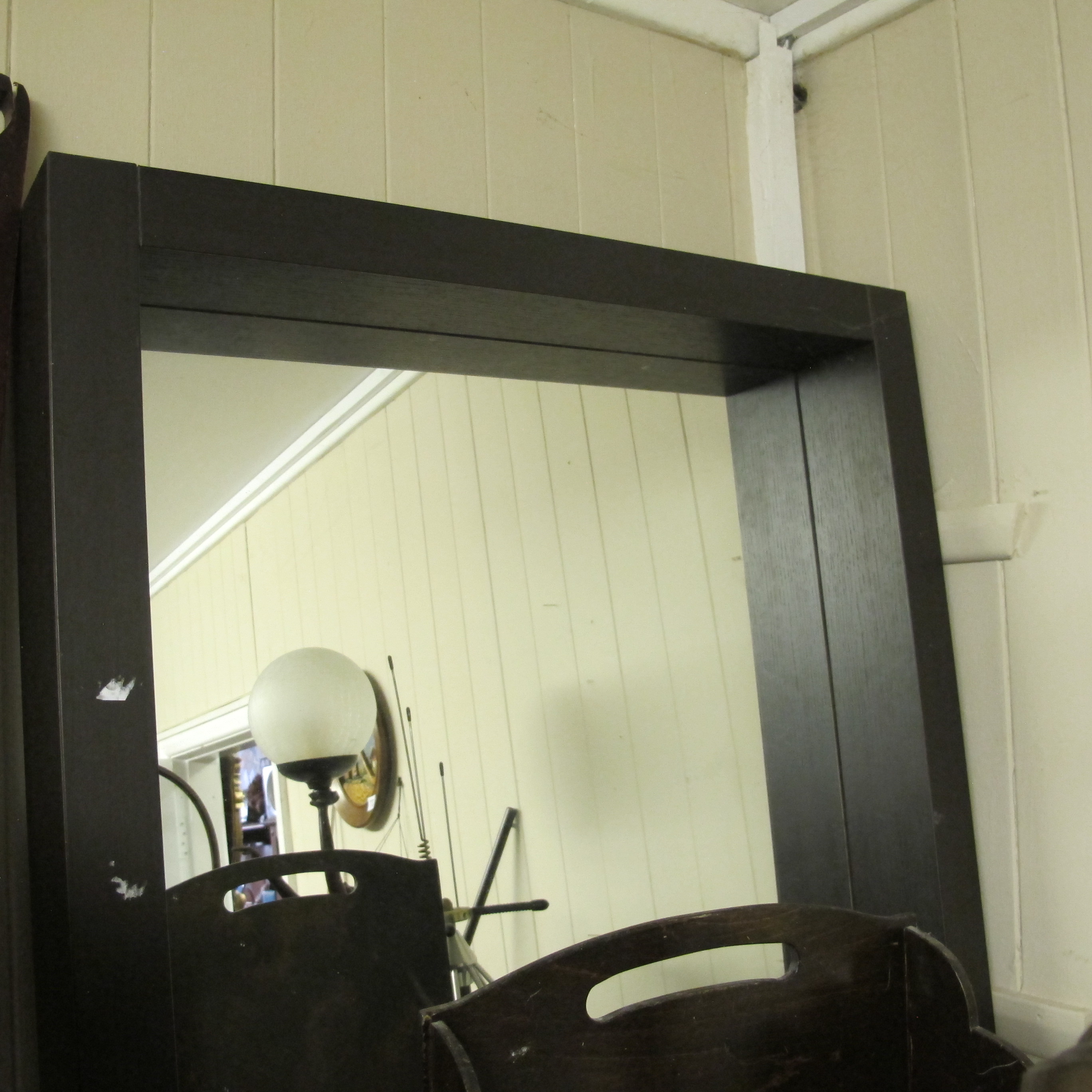Contemporary Minimalist Box-Frame Wall Mirror in Espresso Finish