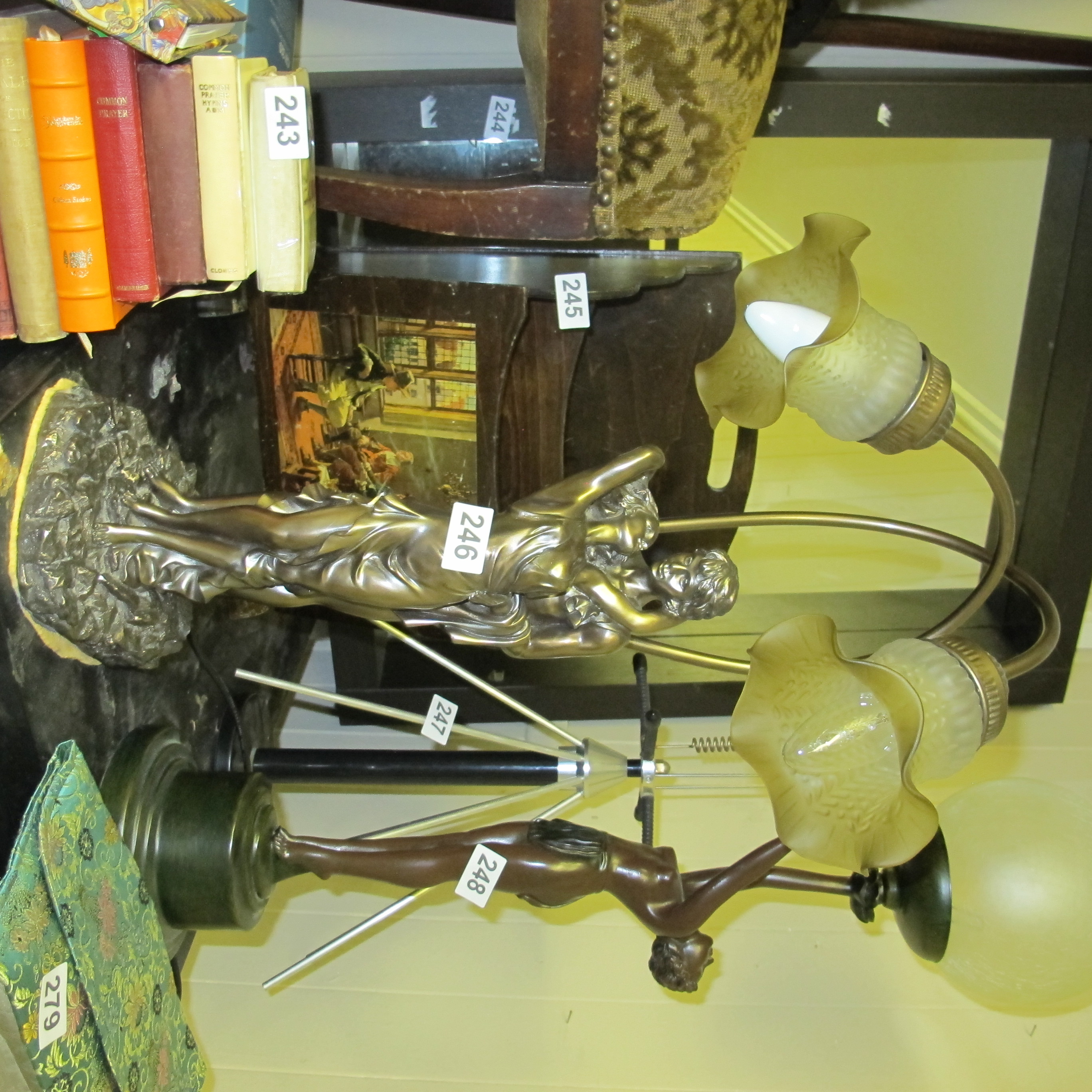 After L. & F. Moreau, Two Figural Table Lamps, Art Nouveau and Art Deco Styles