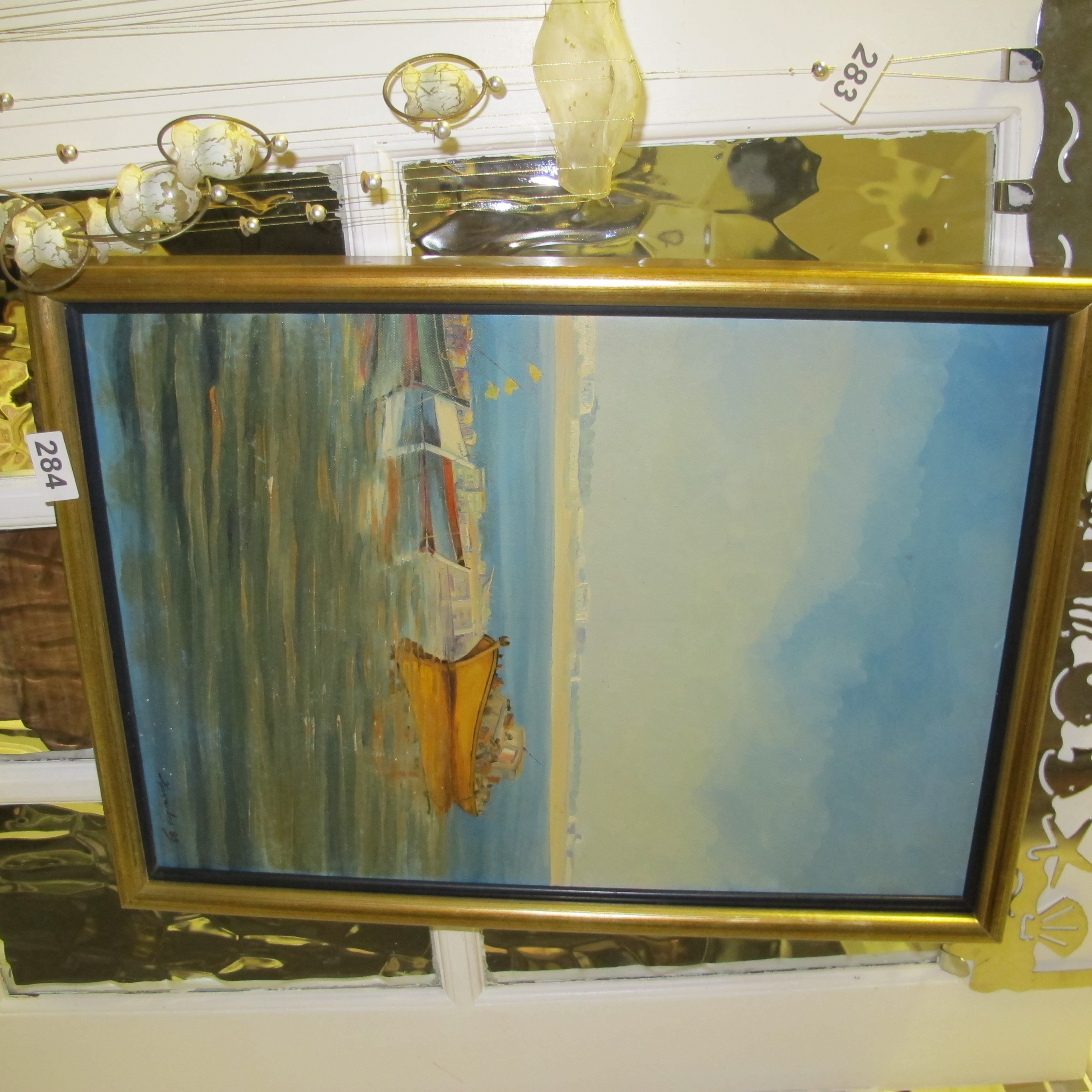 Brooks (20th Century), Harbor Scene with Yellow Vessel, (Signed and Dated 1969)