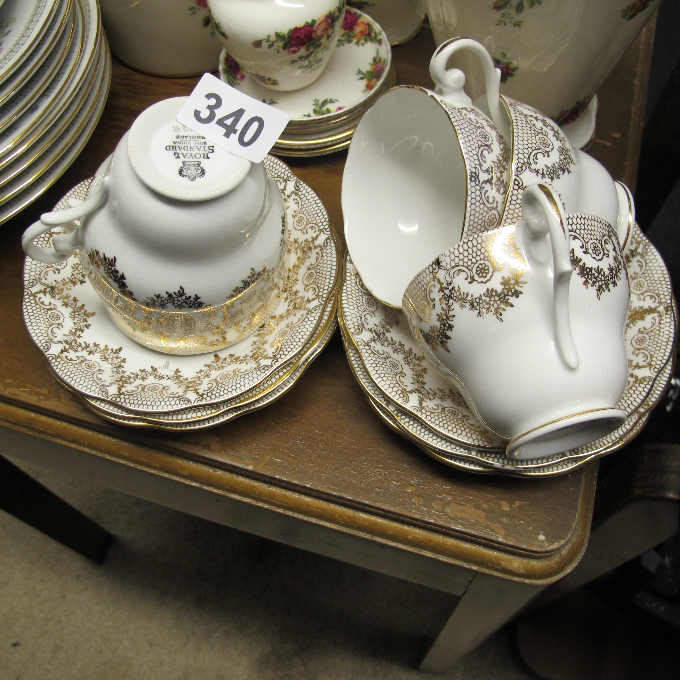 Royal Standard Fine Bone China Teacup and Saucer Collection, Vintage English Gold Filigree Pattern
