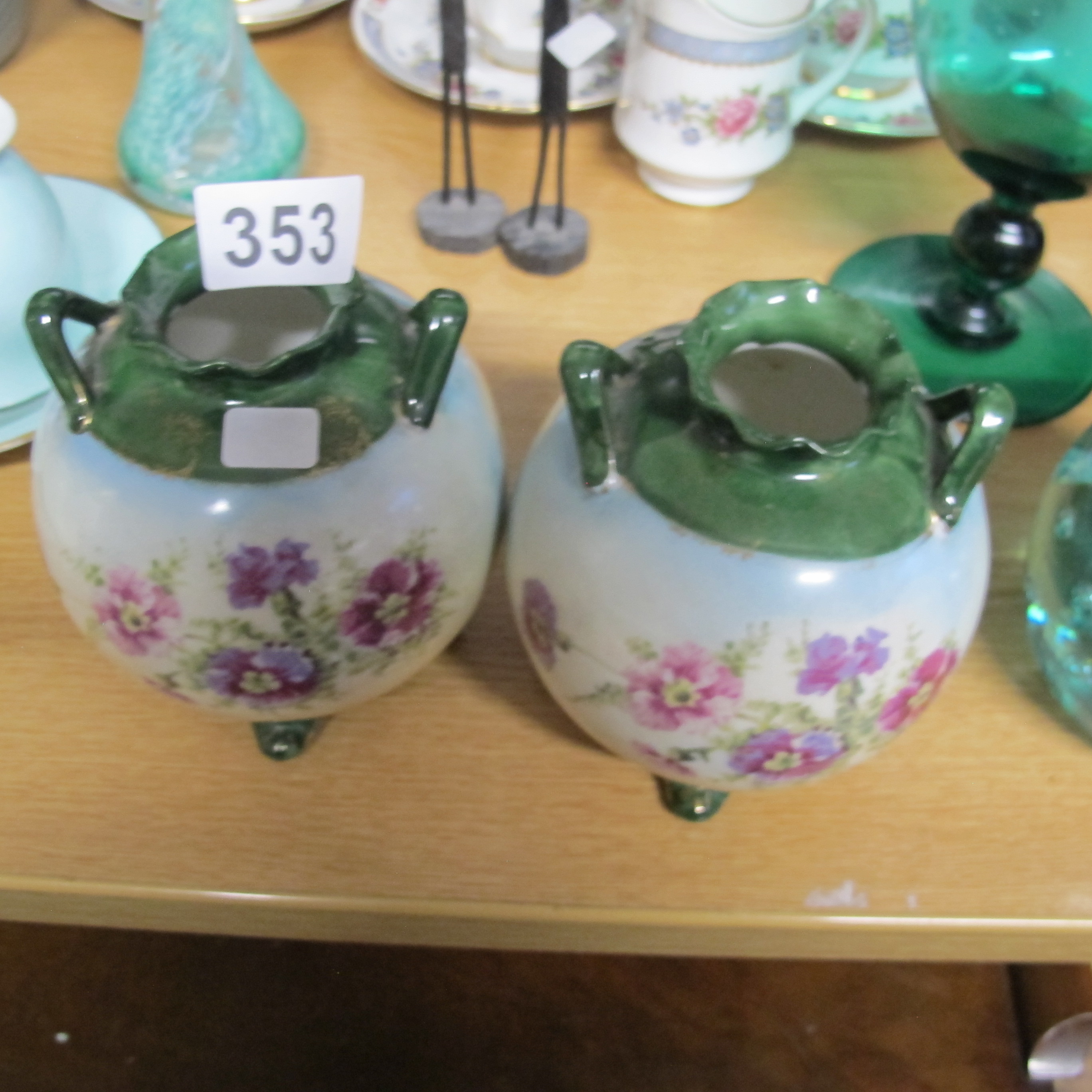 German Art Nouveau Pair of Hand-Painted Porcelain Tripod Jars, c. 1900