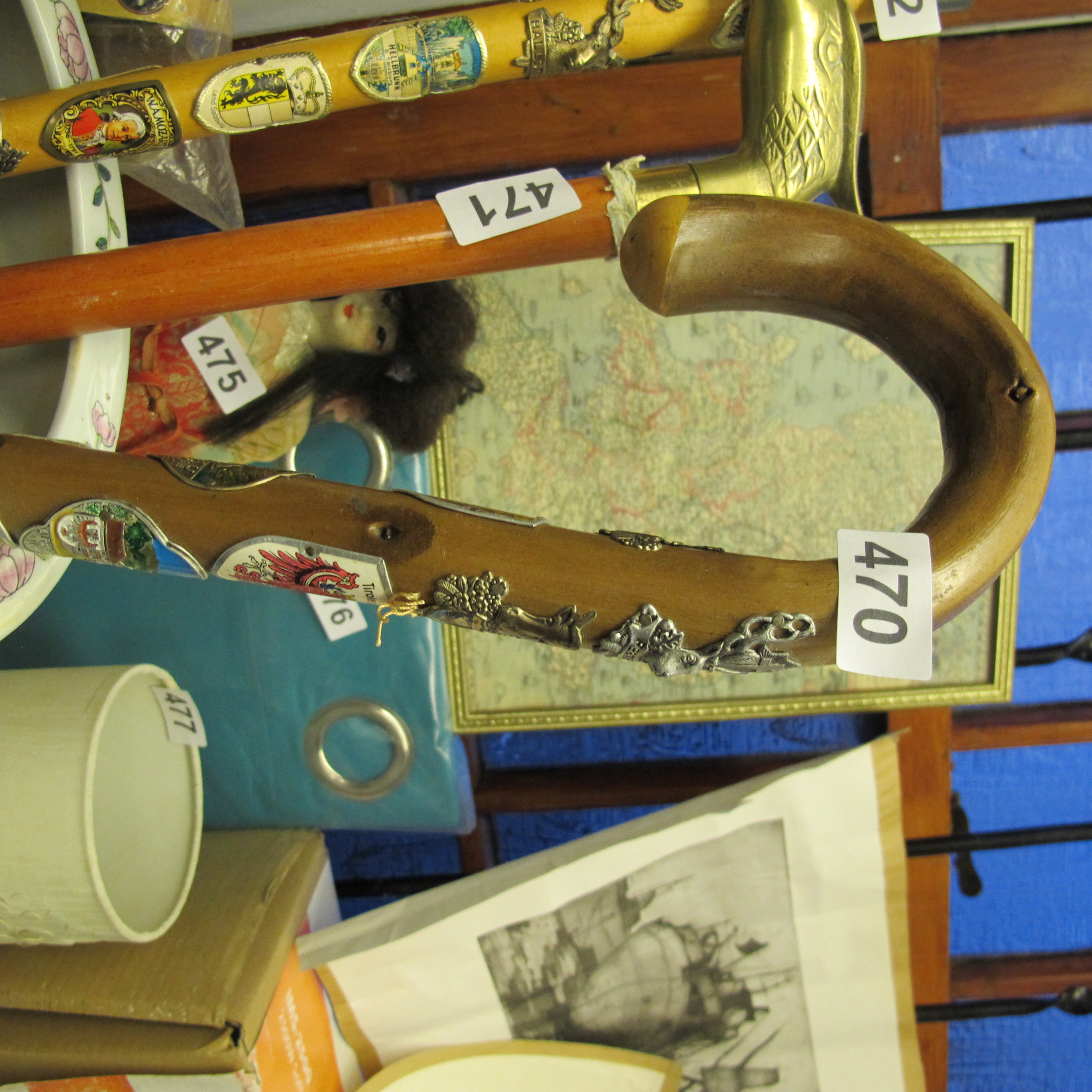 Wood Crook Handle, Alpine Souvenir Walking Cane, Mid-20th Century