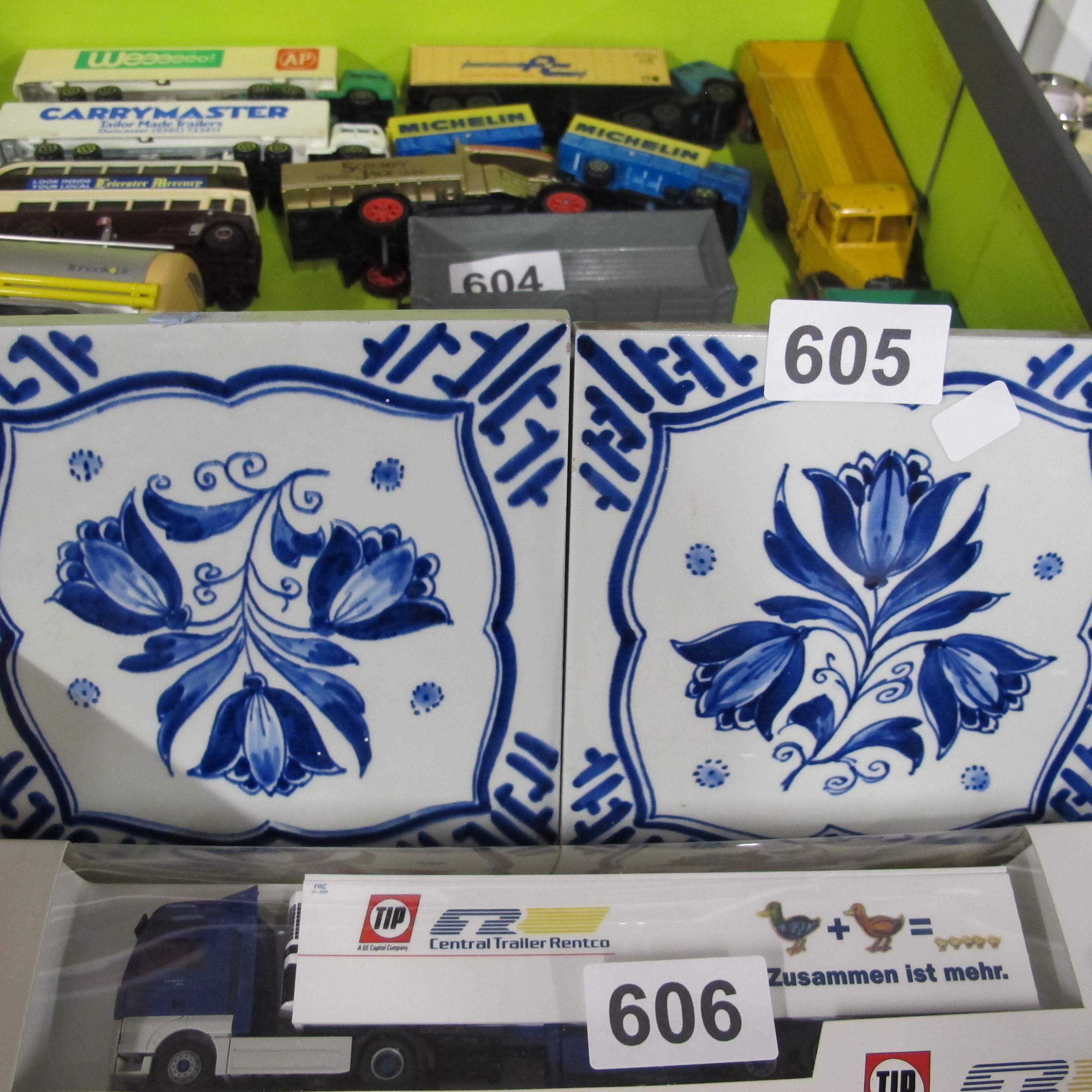 two blue and whilte kettle trivet tiles