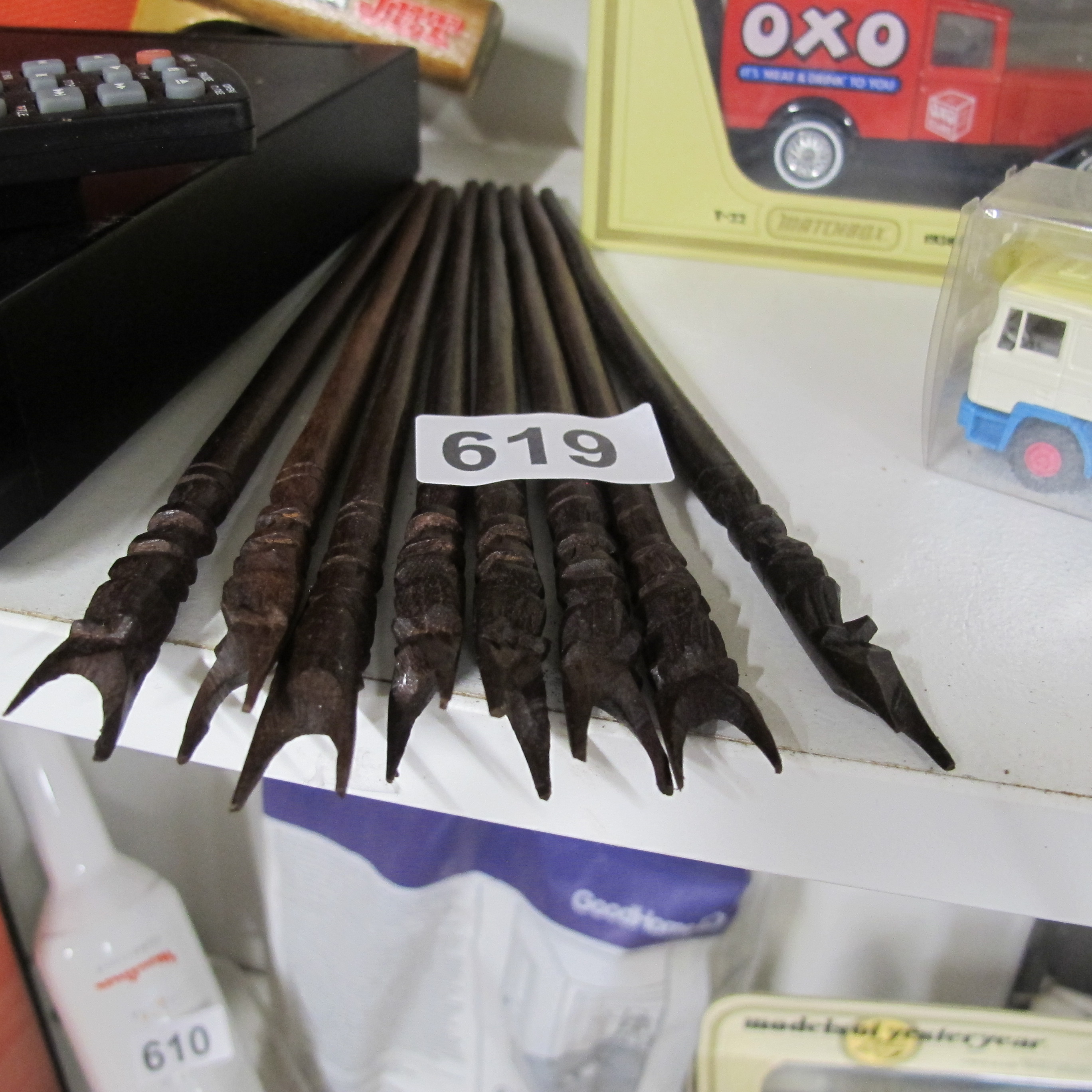 Artisan Unattributed, Hand-Carved Dark Wood Zoomorphic Chopstick Set, Mid-20th Century