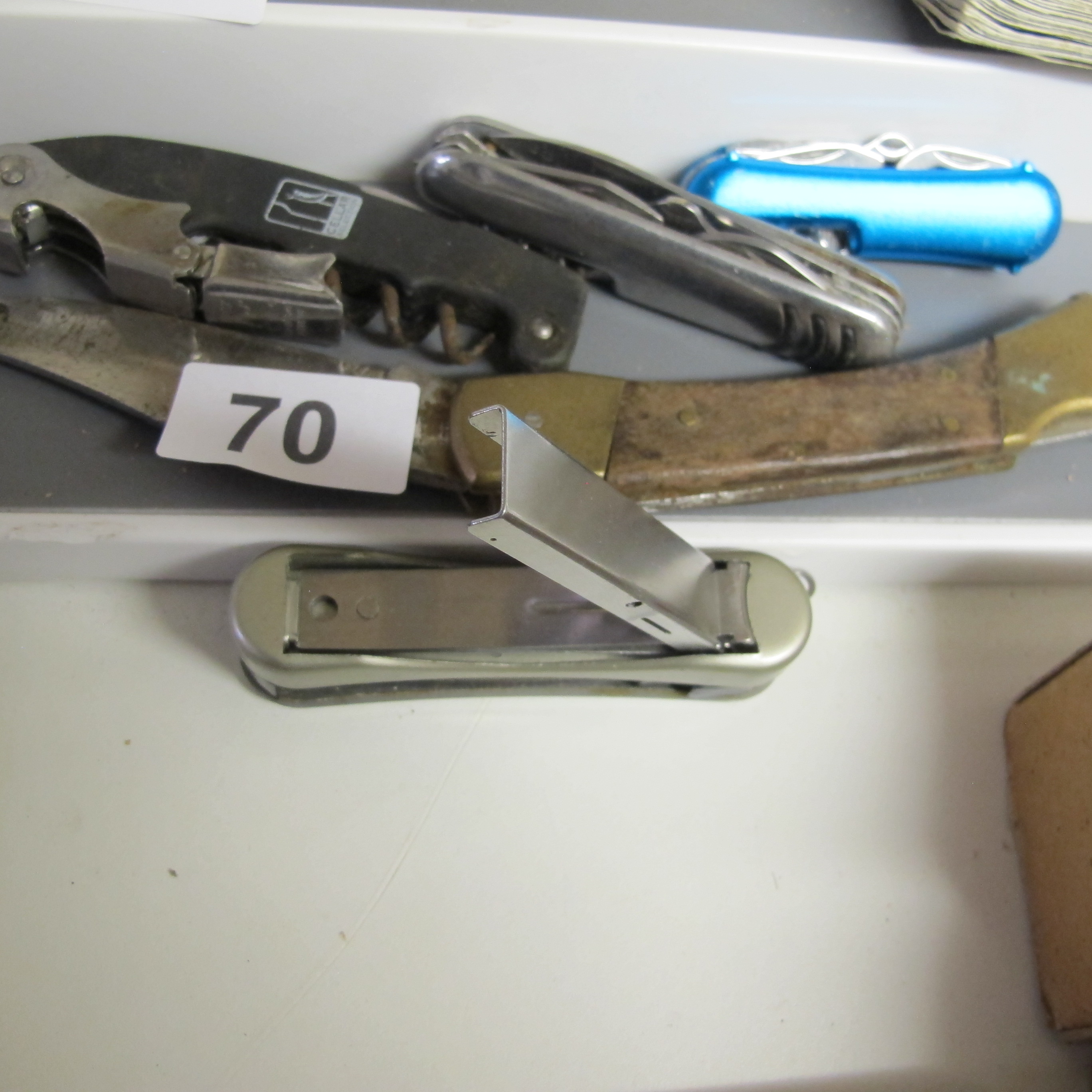 Unmarked and Cellar, Lot of 5 Folding Knives and Multi-tools, Wood and Composite