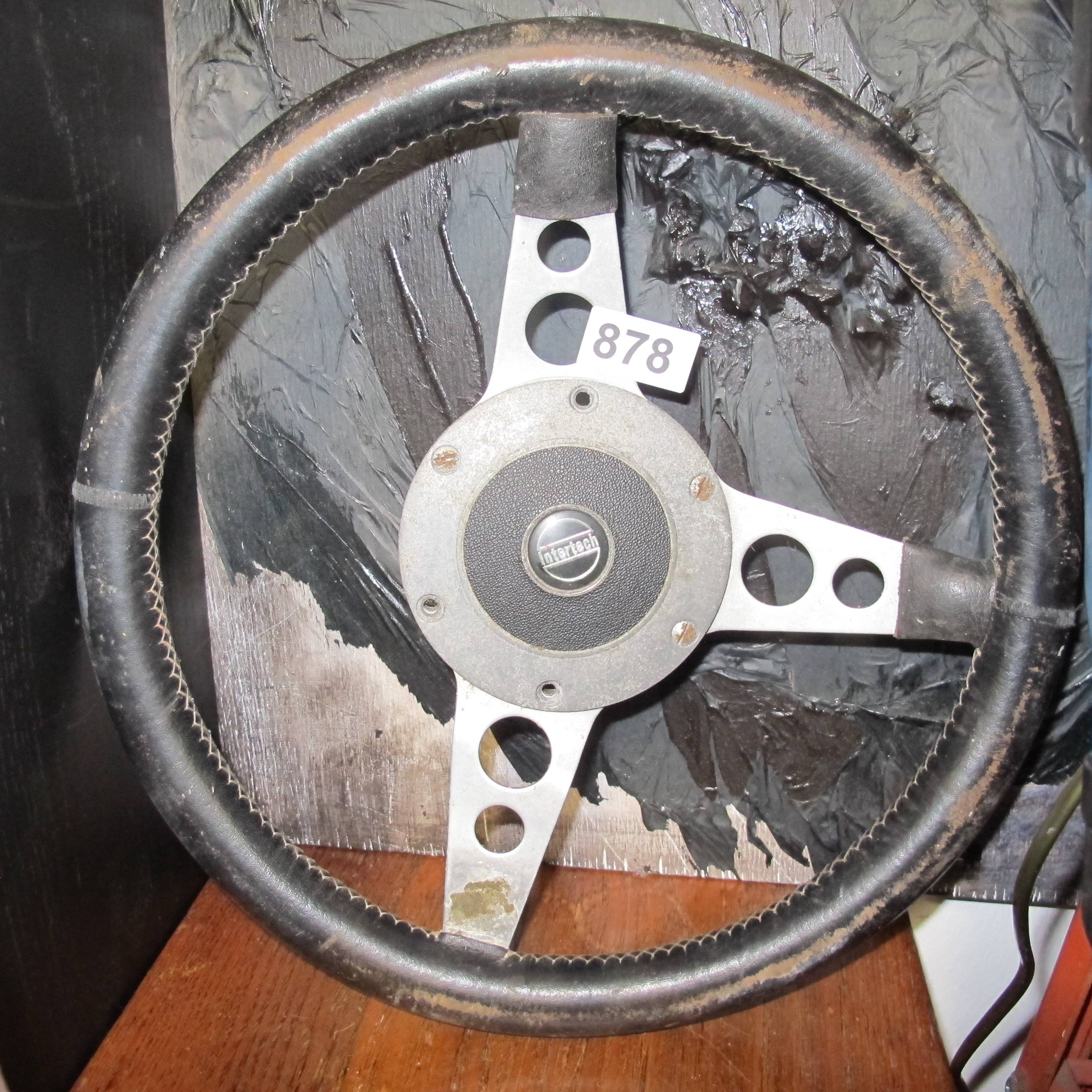 Intertech Aftermarket Sports Steering Wheel, Brushed Aluminum and Stitched Vinyl, c. 1970s-1980s