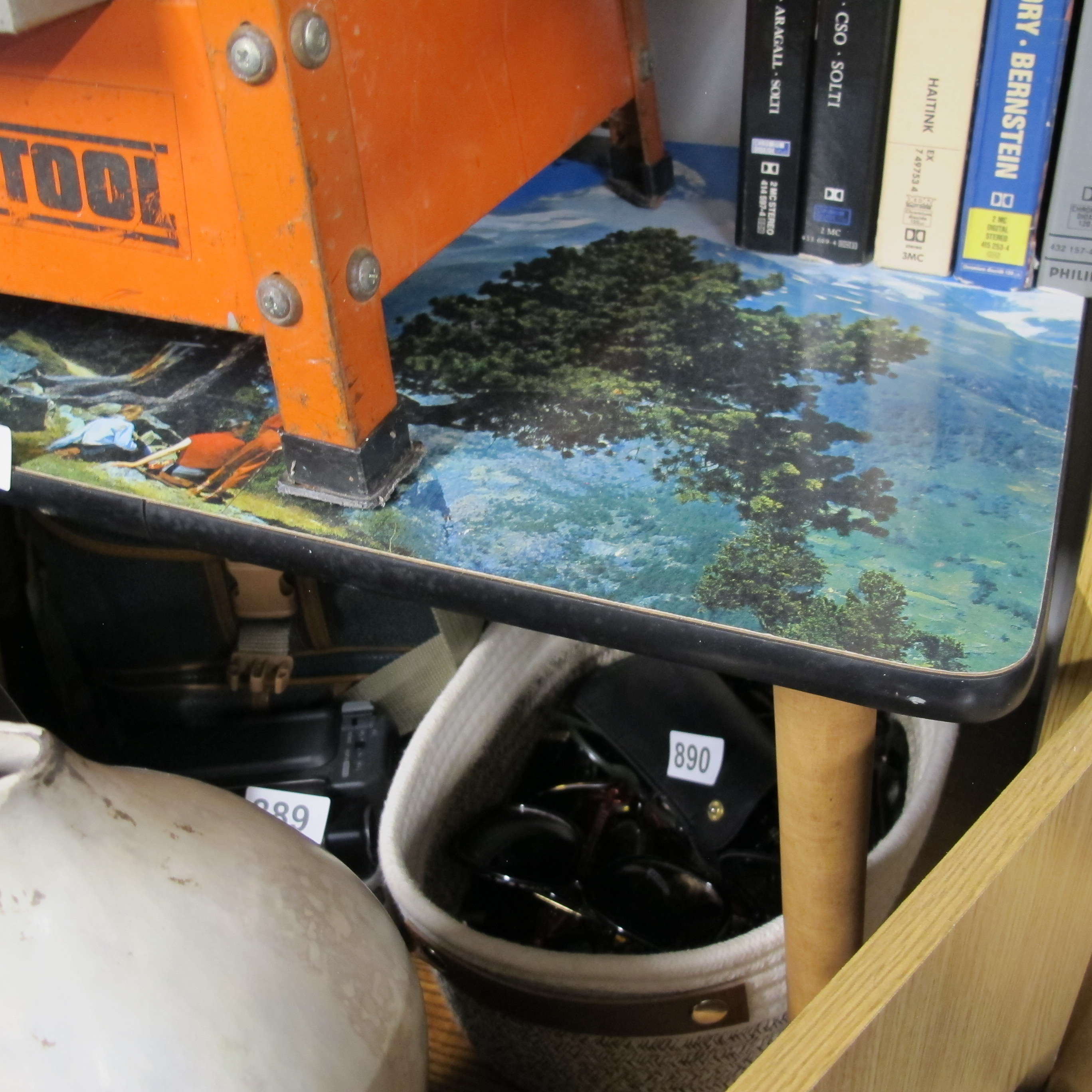 Vintage Mid-Century Style Accent Table with Pastoral Landscape Print