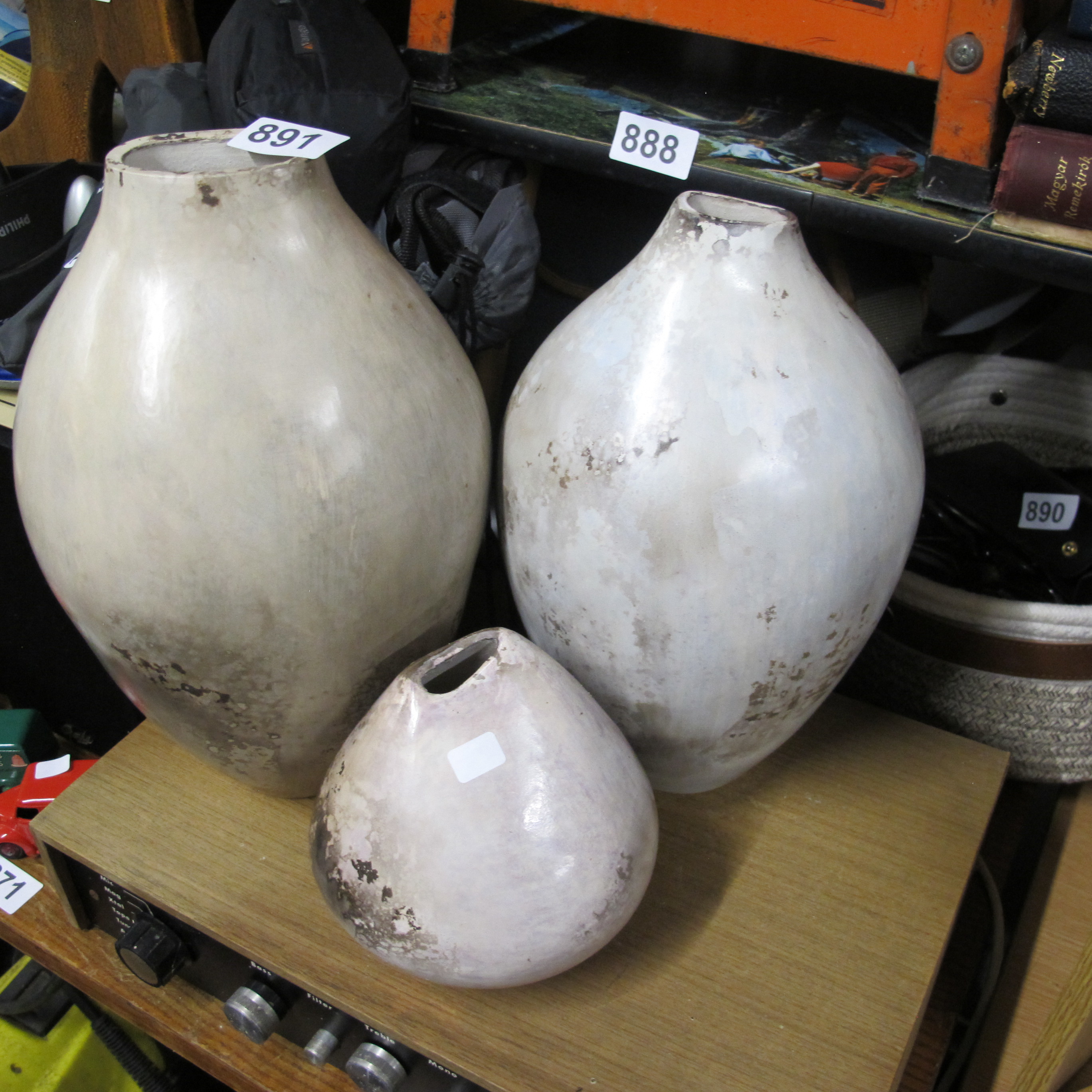 Contemporary Studio Style, Set of Three Stoneware Vases, Modern, Weathered Matte Glaze