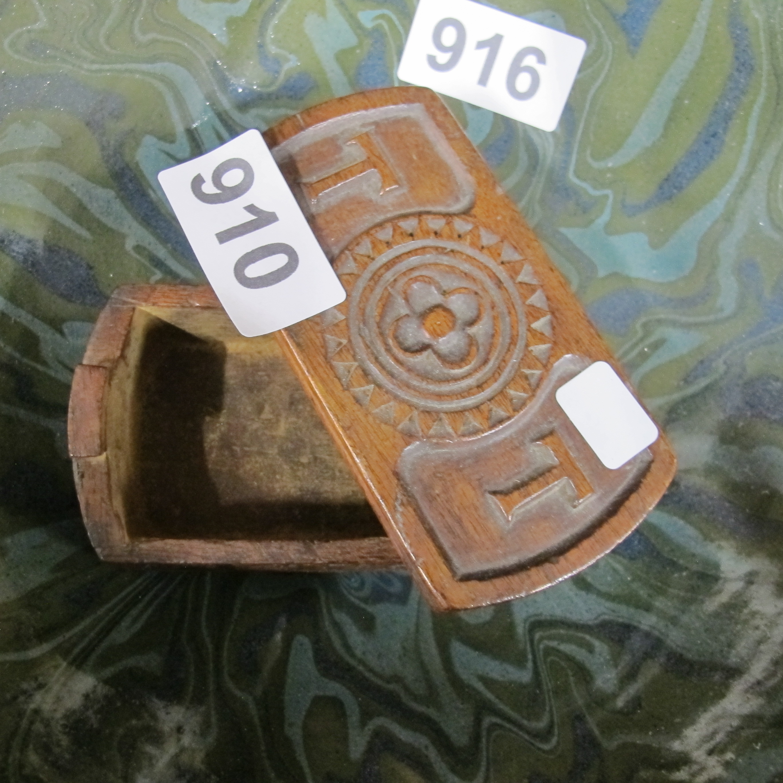 Anonymous, Hand-Carved Hardwood Keepsake Box, Primitive Folk Art Style, Chip-Carved Floral Medallion and Initials